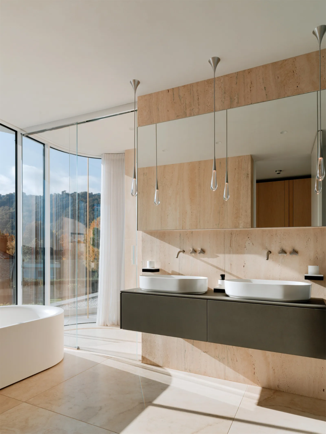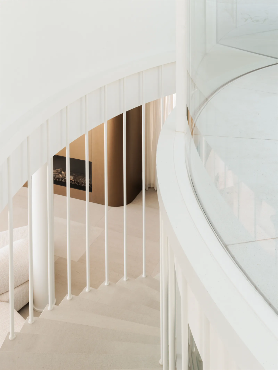 别墅内共有 4 间卧室,5 个卫生间,在室内设计中设计师同样注重了轻盈感。