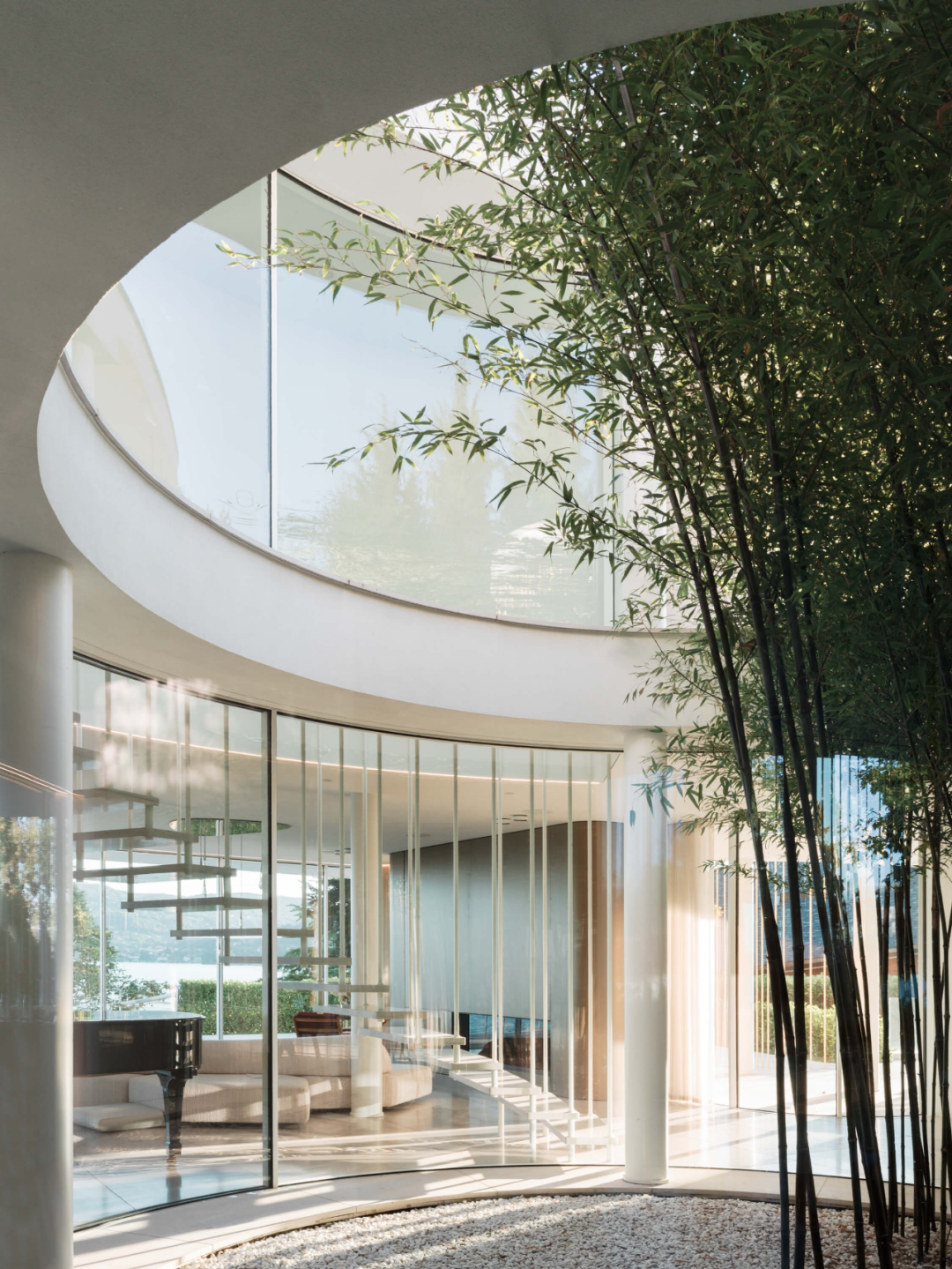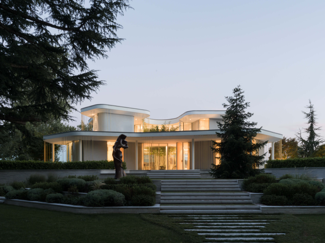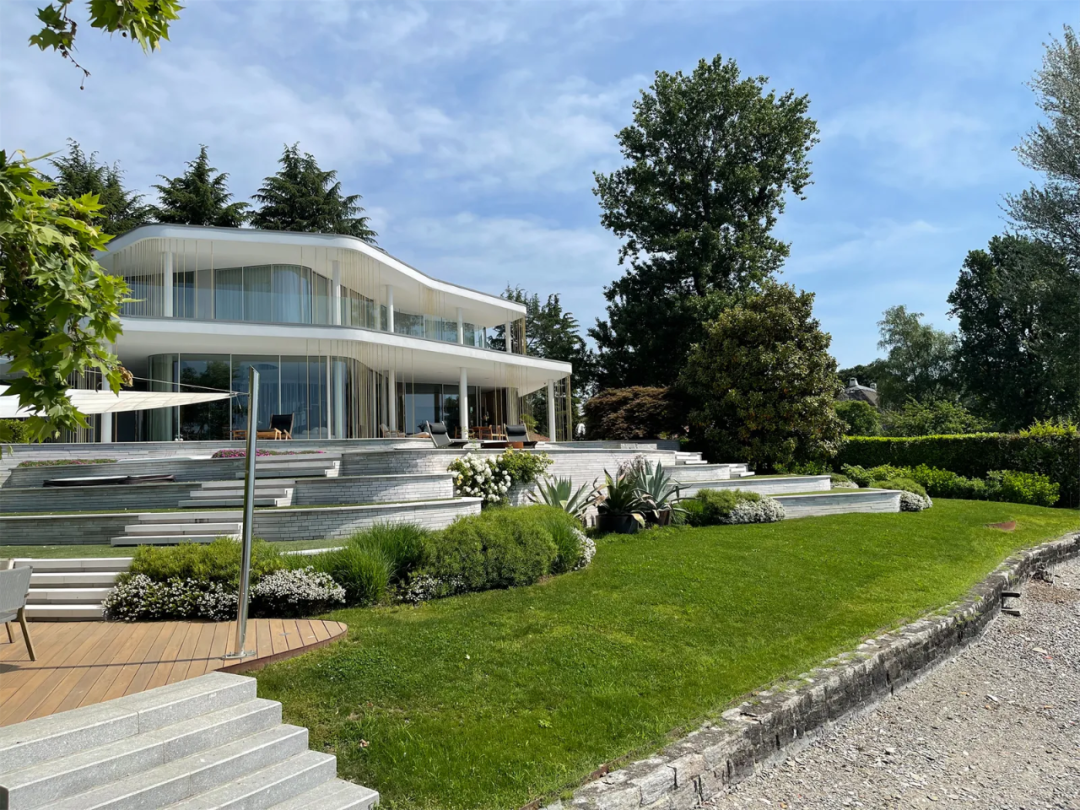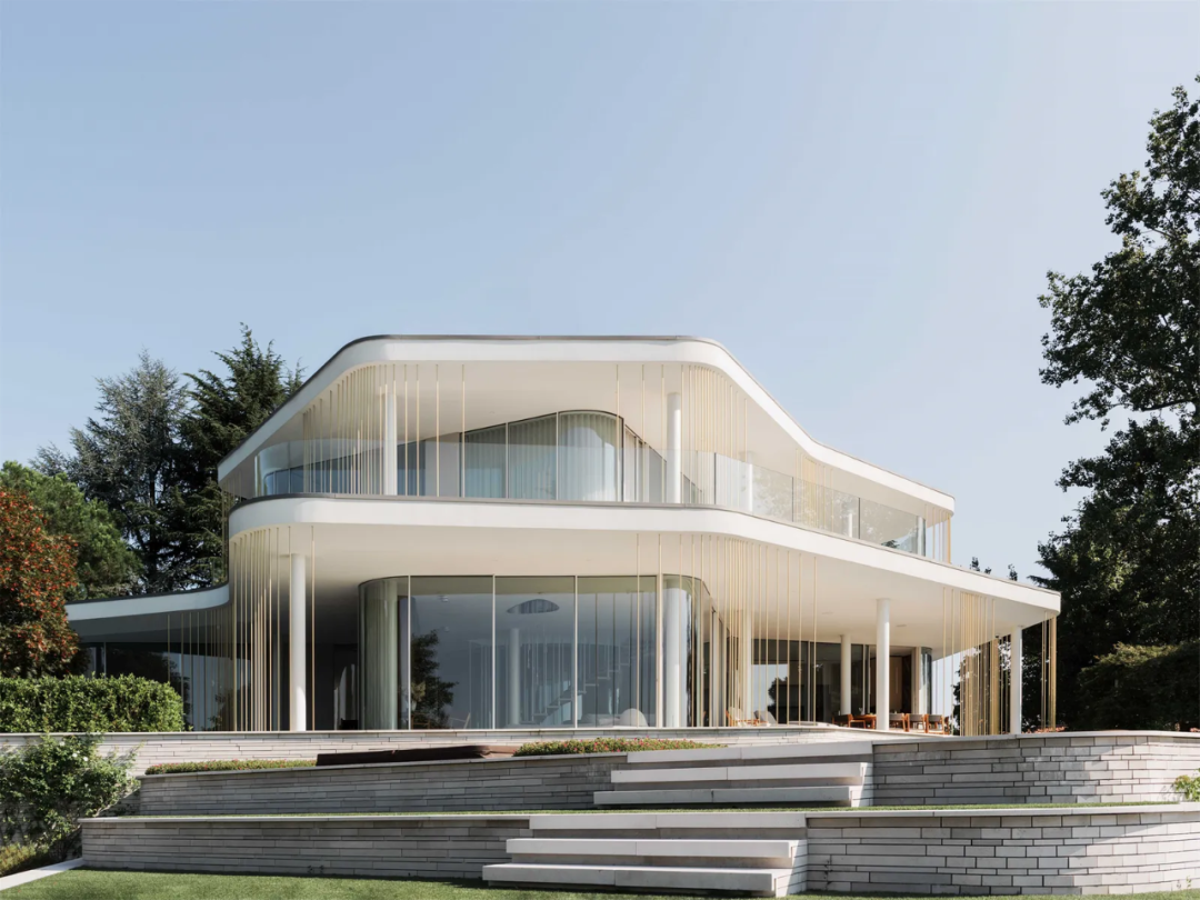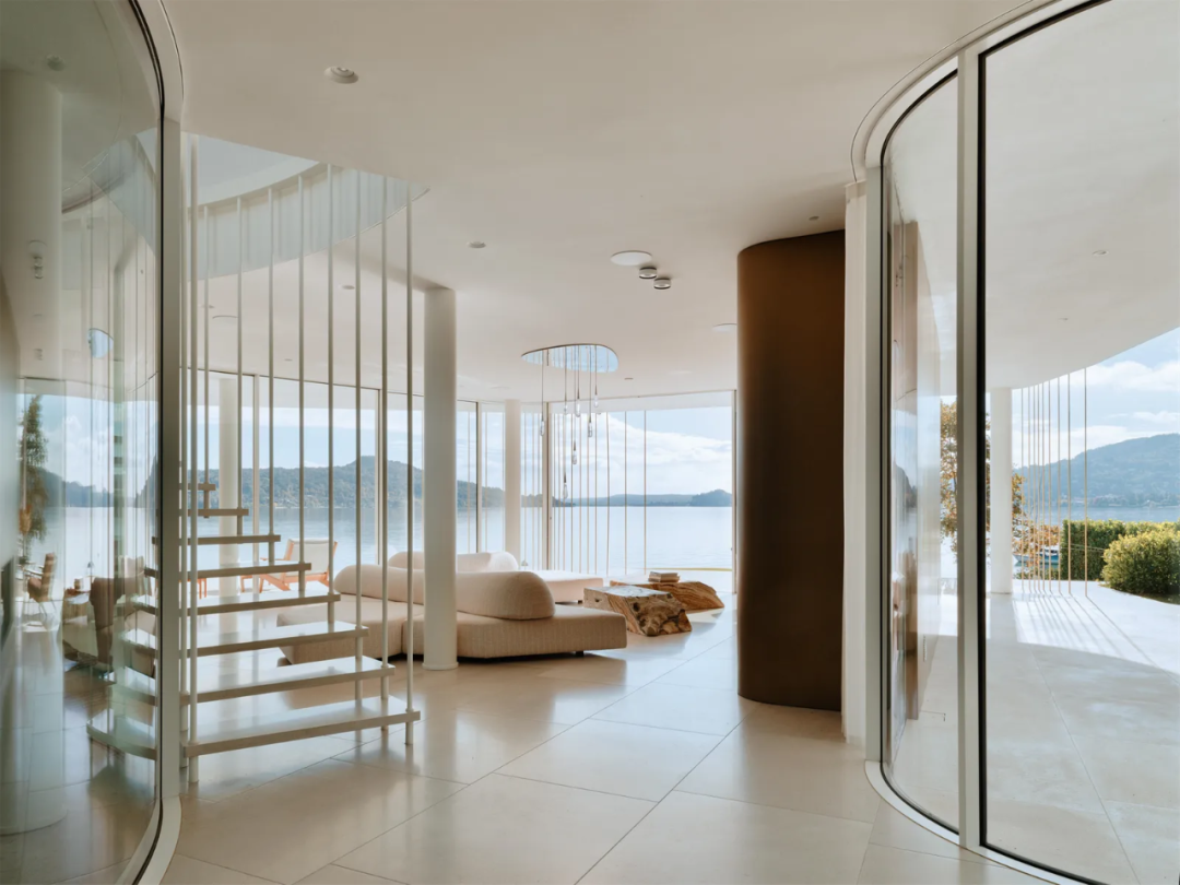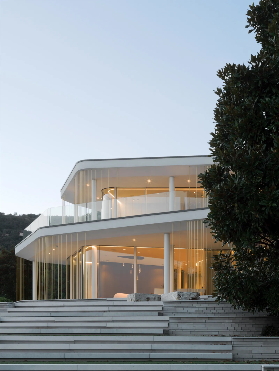 「Villa Mosca Bianca」是位于意大利马焦雷湖畔的一栋白色、有着不规则建筑造型的度假别墅,面积为 929㎡,由事务所 Design Haus Liberty 设计。