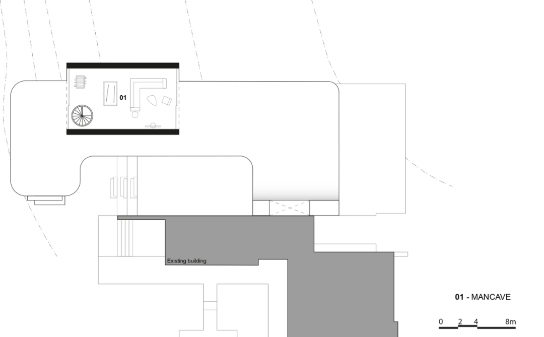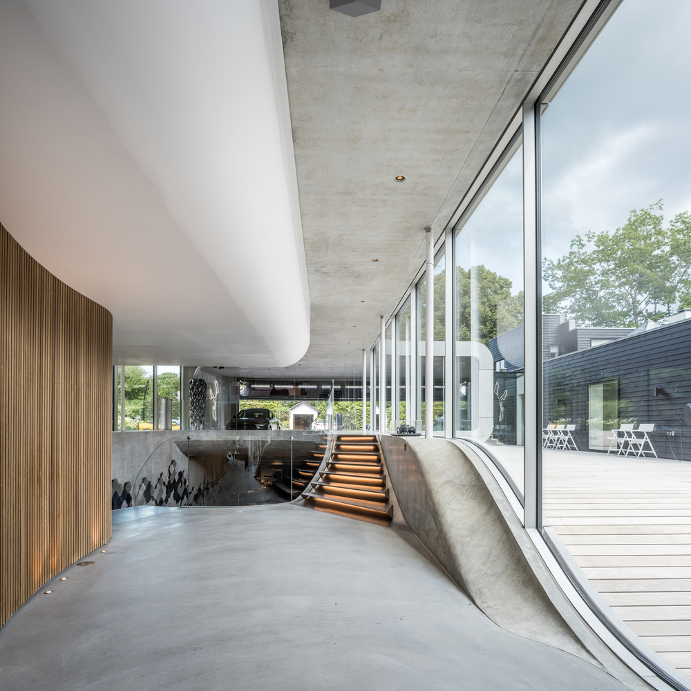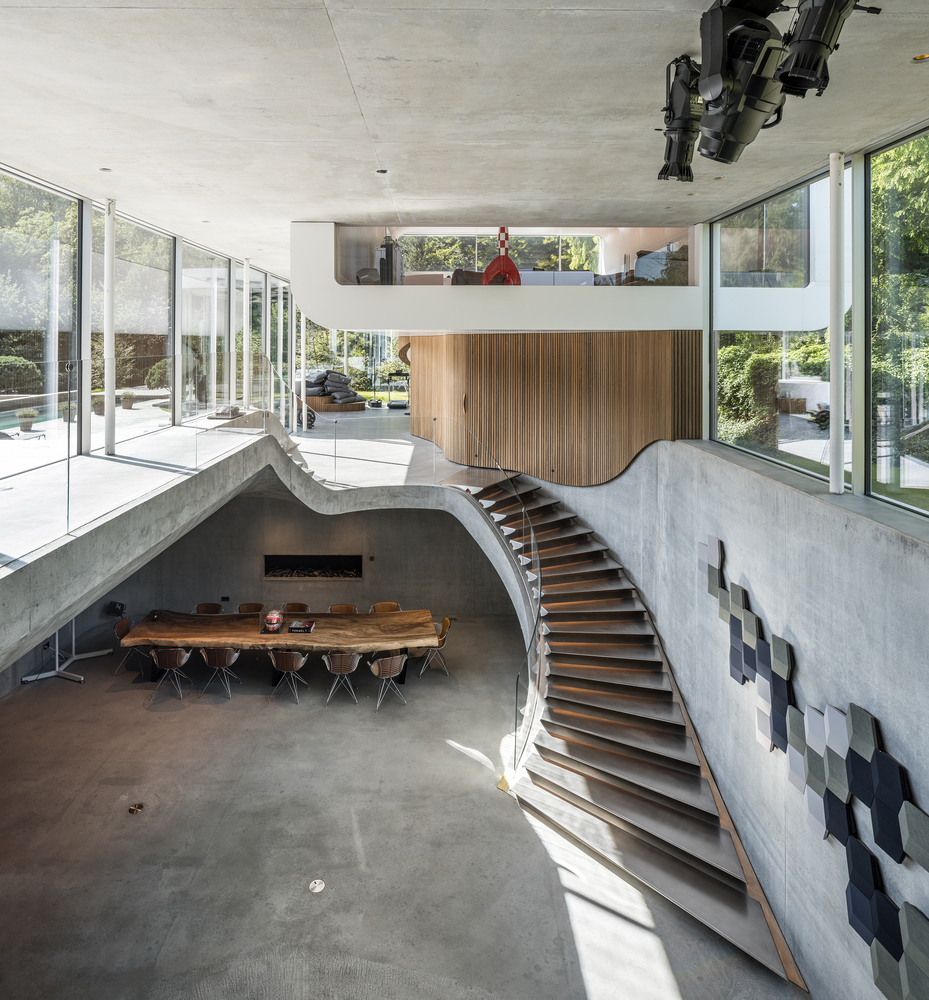 该别墅的用途并不是用来居住,而是一个供展览、娱乐、休闲、接待和招待客人的享乐空间。屋主喜欢工业风又想要一个简洁、干净的开放空间,呈现一种自由的向度。