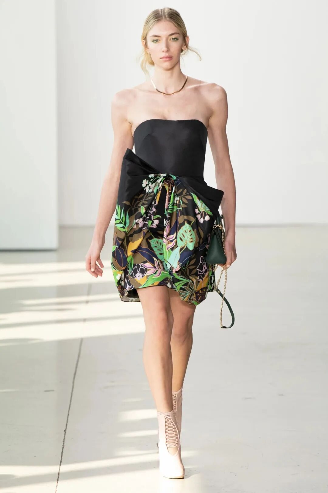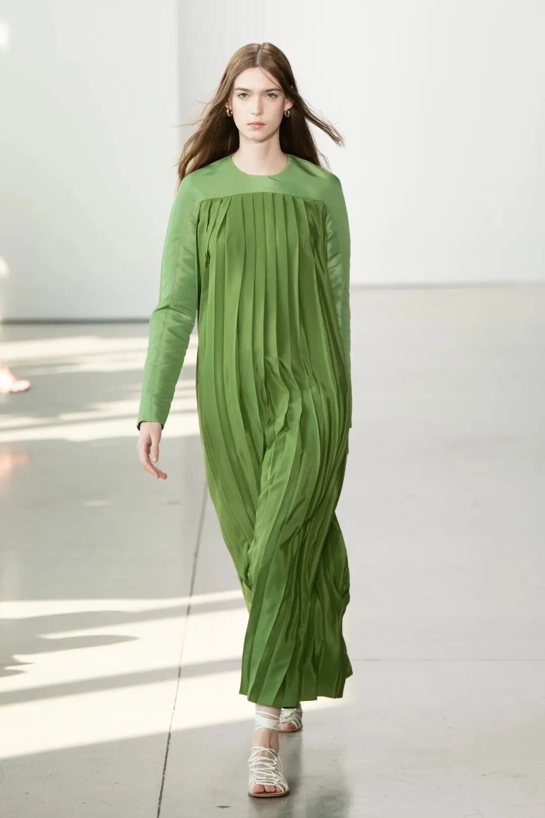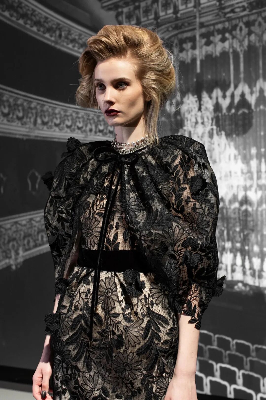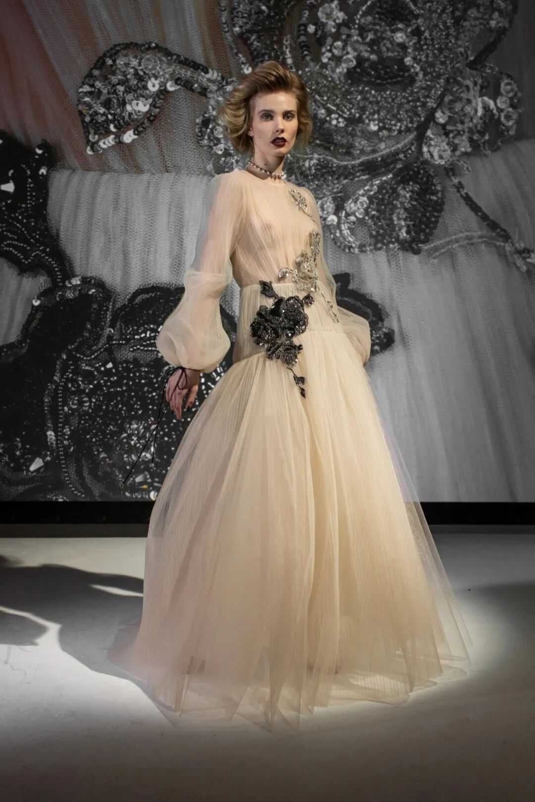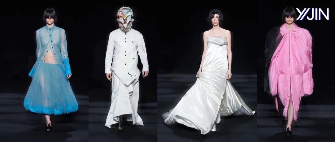 空气感与水晶刺绣薄纱礼服等作品的轻盈感相得益彰。在色彩方面,大量的象牙色和绿色,非常清新又具有并不冲突的厚重感。