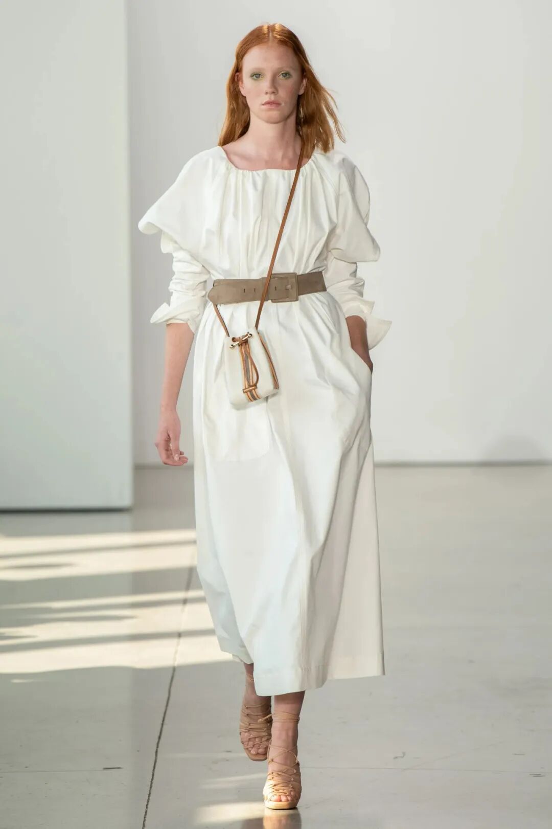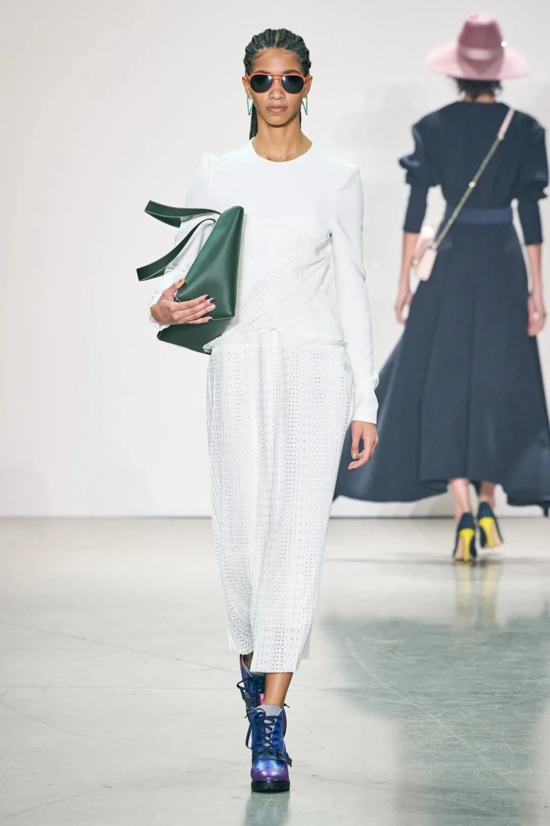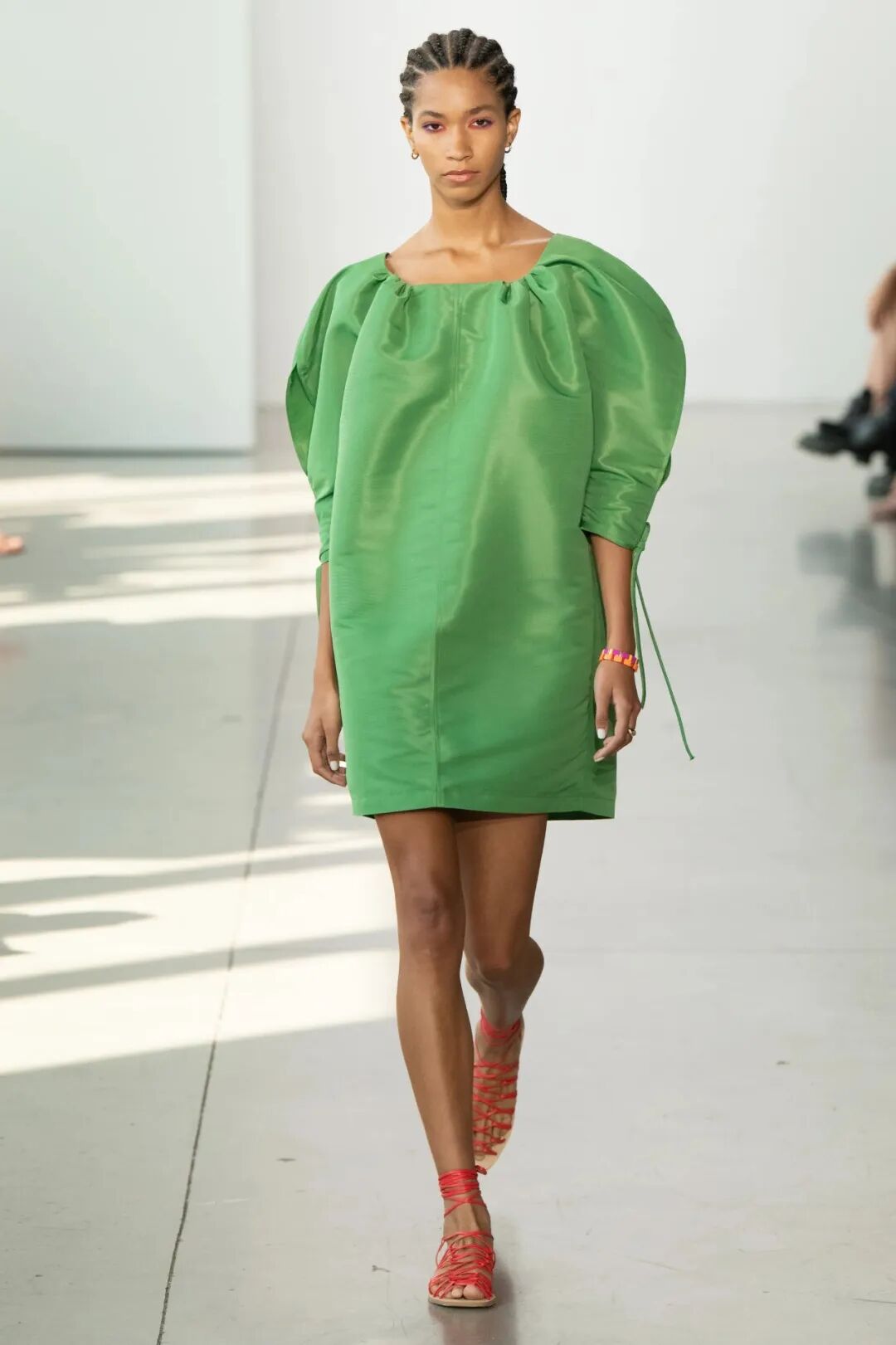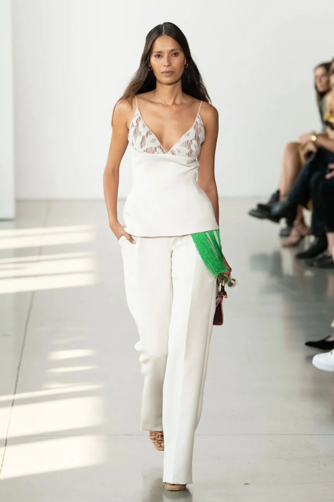 空气感与水晶刺绣薄纱礼服等作品的轻盈感相得益彰。在色彩方面,大量的象牙色和绿色,非常清新又具有并不冲突的厚重感。
