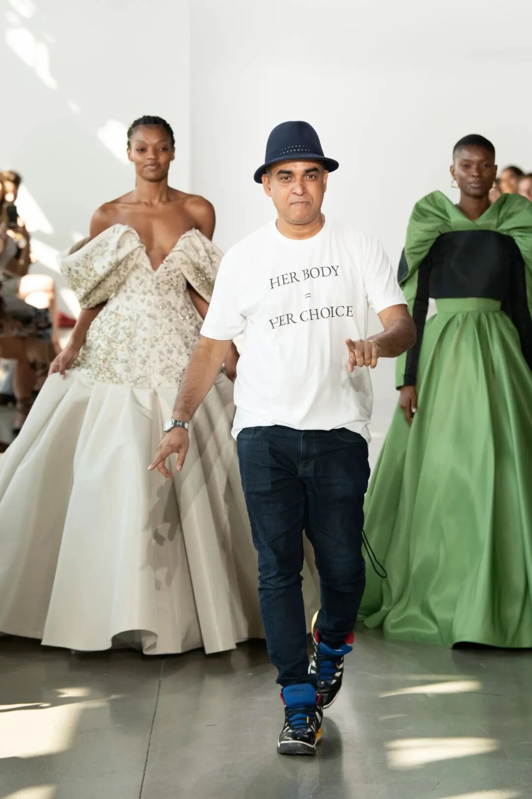 当Mohapatra还在秀场上穿着一件写有“她的身体=她的选择”的T恤(指德克萨斯州的反堕胎裁决)。