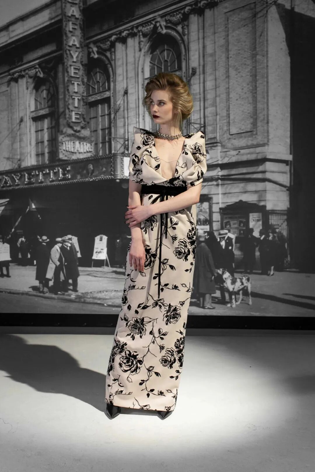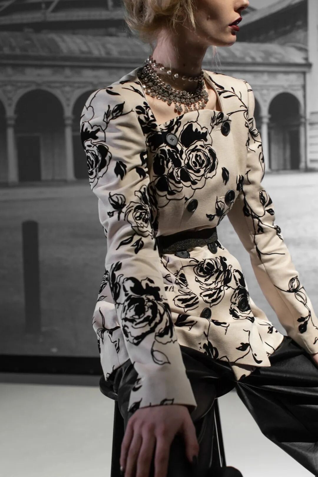 老式的玫瑰图案,植绒的帆布面料引入,让本系列增加了富有韵味的“经典”感。