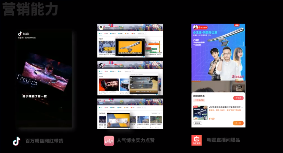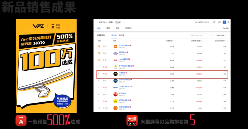 这个品我们在市场推出时主打的也是第一款双面拾音灯,跟我们去年的曲面屏幕挂灯是一样,也是第一款曲面屏幕挂灯。去年这个品它卖得好的主要原因就是它是一个细分类目,是一个比较新奇特的产品,他的新鲜程度、有趣的程度会比屏幕挂灯要强烈。