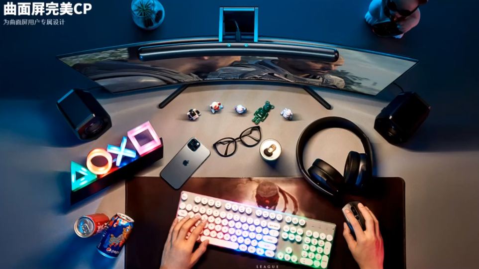 所以我们做了一个相对来说比较适配市场上大多数曲面屏曲率的曲面屏挂灯,打的slogan 就是曲面屏的完美 CP。