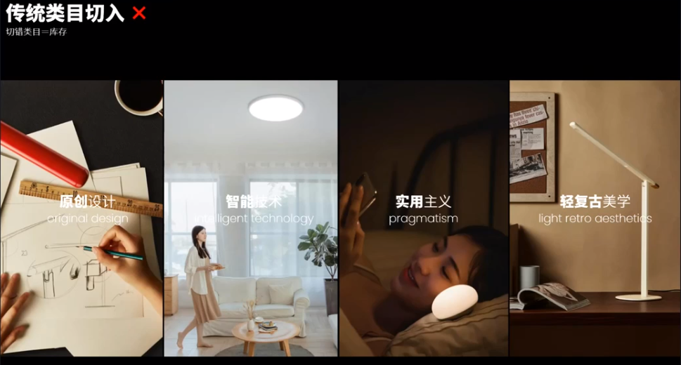 我们是真的花了很多功夫去研究产品。但,我很负责的告诉大家,这些产品,尤其是台灯产品,到现在为止它20年的库存还没有销售完。这就是我们切错类目,从传统类目切入的结果。