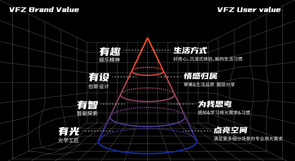 “VFZ”真正诞生于2021年。品牌整个中心思想就是:有趣有光有质有色。我们的slogan就是用光让生活更值得期待。