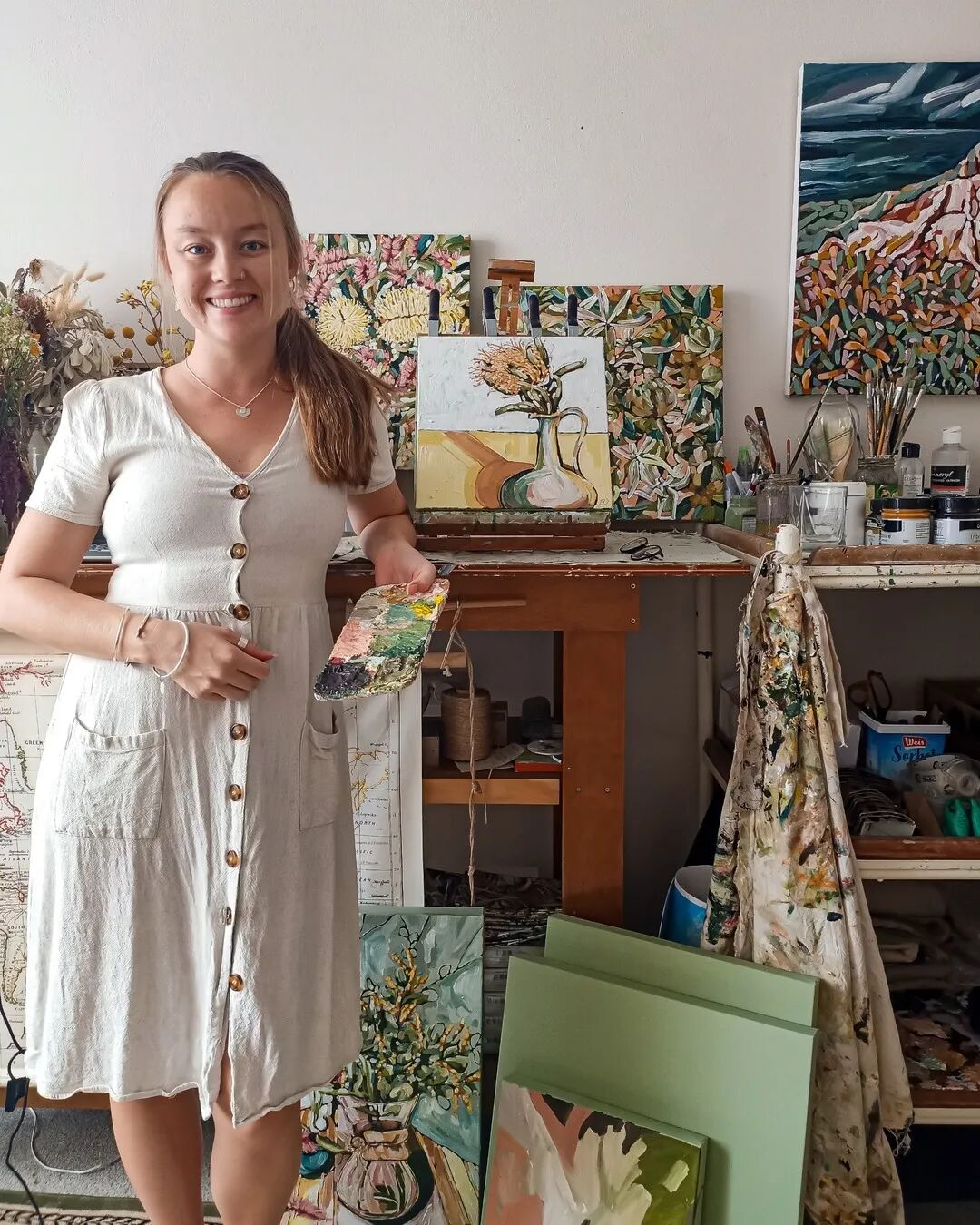 Emily Day是一位自学成才的新兴艺术家。她作为画家的实践是通过在快速分层的颜料中以松散的笔触来构建细节区域的定义。她主要使用丙烯颜料来绘制充满活力的花卉场景和静物。