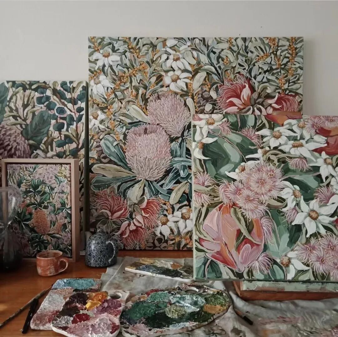 她说:“我发现完成一幅画的整个过程非常像冥想,从寻找花草和树叶,将它们排列成一个可爱的构图,混合美丽的色彩,然后慢慢地将松散的笔触分层,直到我认为一幅画完成了。我经常将通过我脑海中的照片、草图和记忆拼接在一起来设计一个场景。”