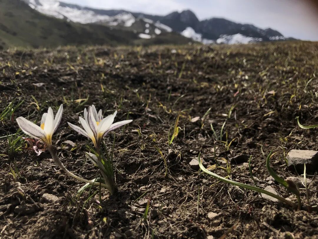 “在新疆,我第一次近距离见到了雪山,见到了顶着冰霜开放的顶冰花。”