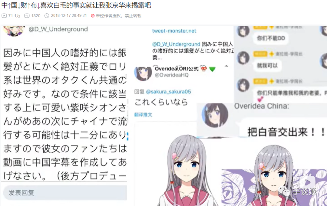 讲到这里,才出现了“中国人是白毛控”这个梗的第一讲述人,起先,它应该是一种日本网友(京华为日籍)对中国阿宅的审视,某种程度上这属于日本人对于中国人旗袍、丸子头、说话带哎呀这种刻板印象的一种,但是在2018年,大家能和和睦睦的玩这种刻板印象的梗,然而时过境迁,我们甚至不能去怀念,心情复杂。