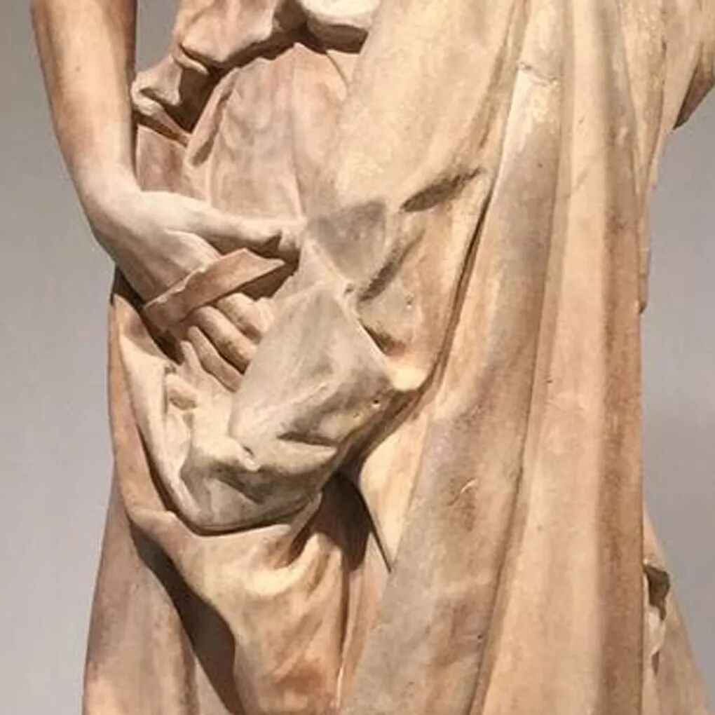 雕像上并没有随着肉体的动作而布置的衣褶,整个身躯只是包裹在沉重的衣帛之下。可以说,多纳泰罗把一切艺术的词藻都废弃了,使作品的“丑”更明显。