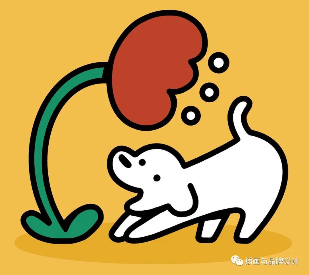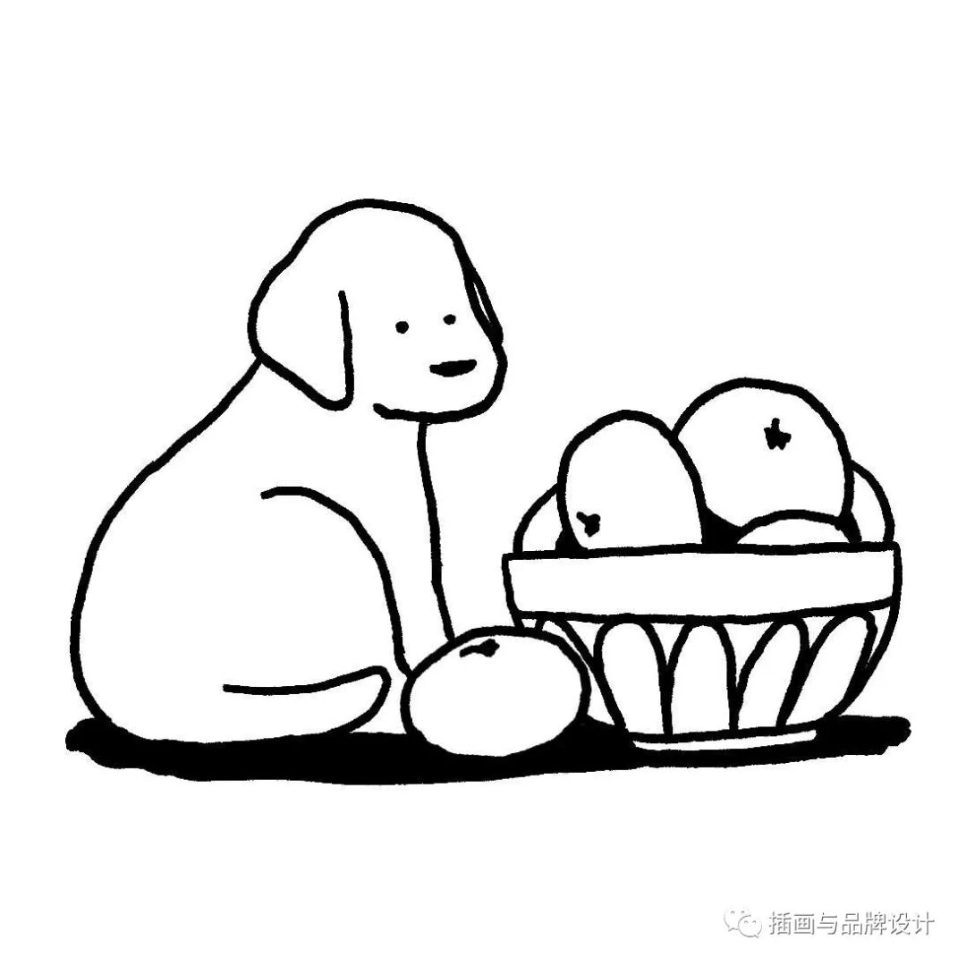 白色的小狗被寥寥几笔简单勾画,颜色、线条以及狗狗的形态都绝不增添多余的笔墨,却有十分生动形象、栩栩如生。