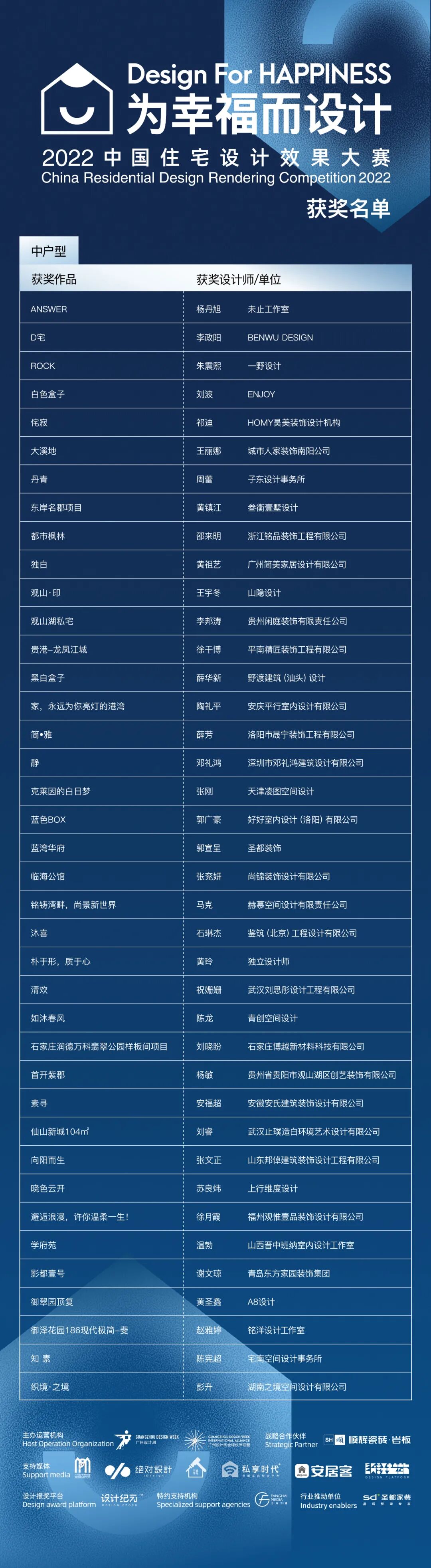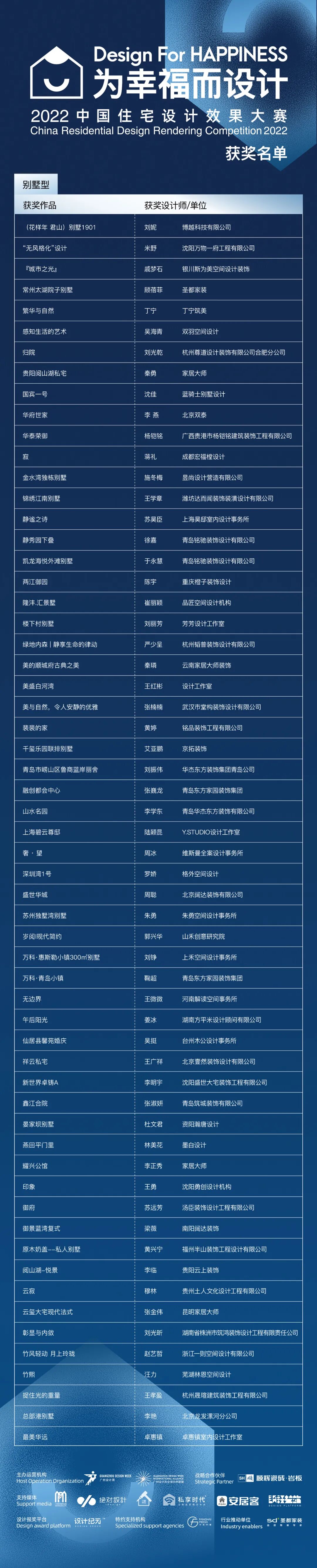 再次祝贺以上获得“2022中国住宅设计效果大赛优秀奖”的设计师!