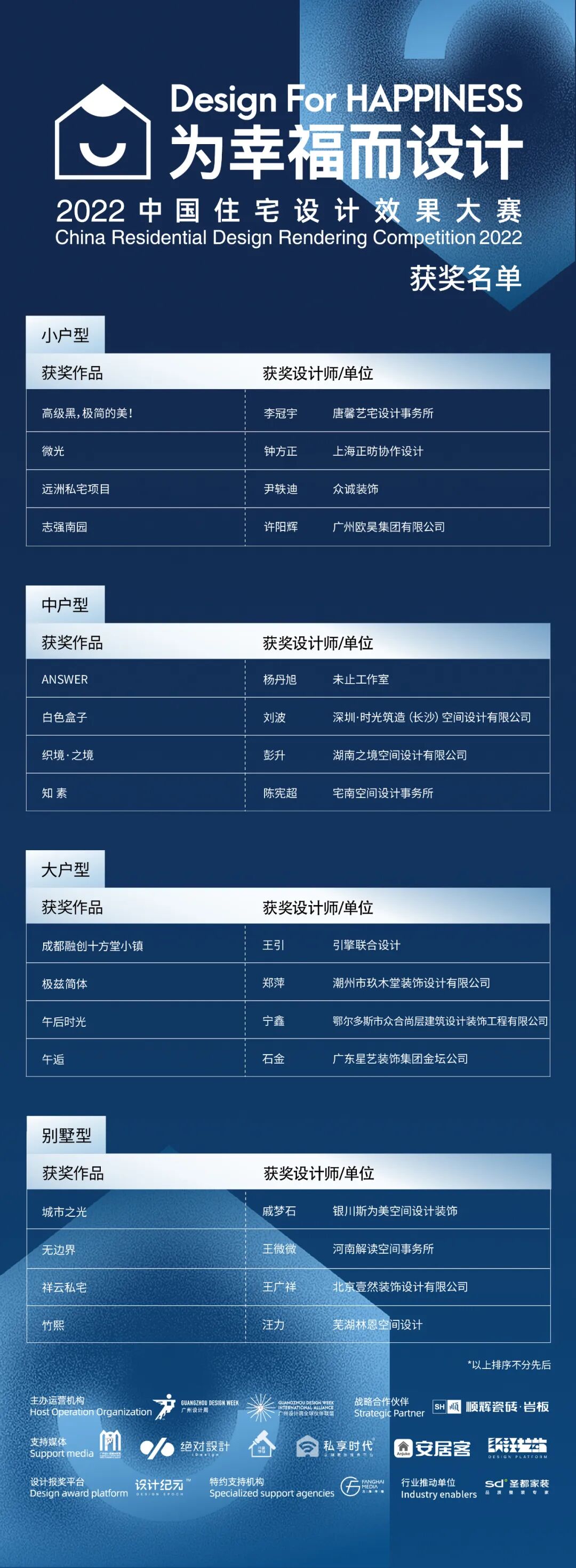 再次恭喜荣膺“2022中国住宅设计效果大赛金奖”的优秀设计师!