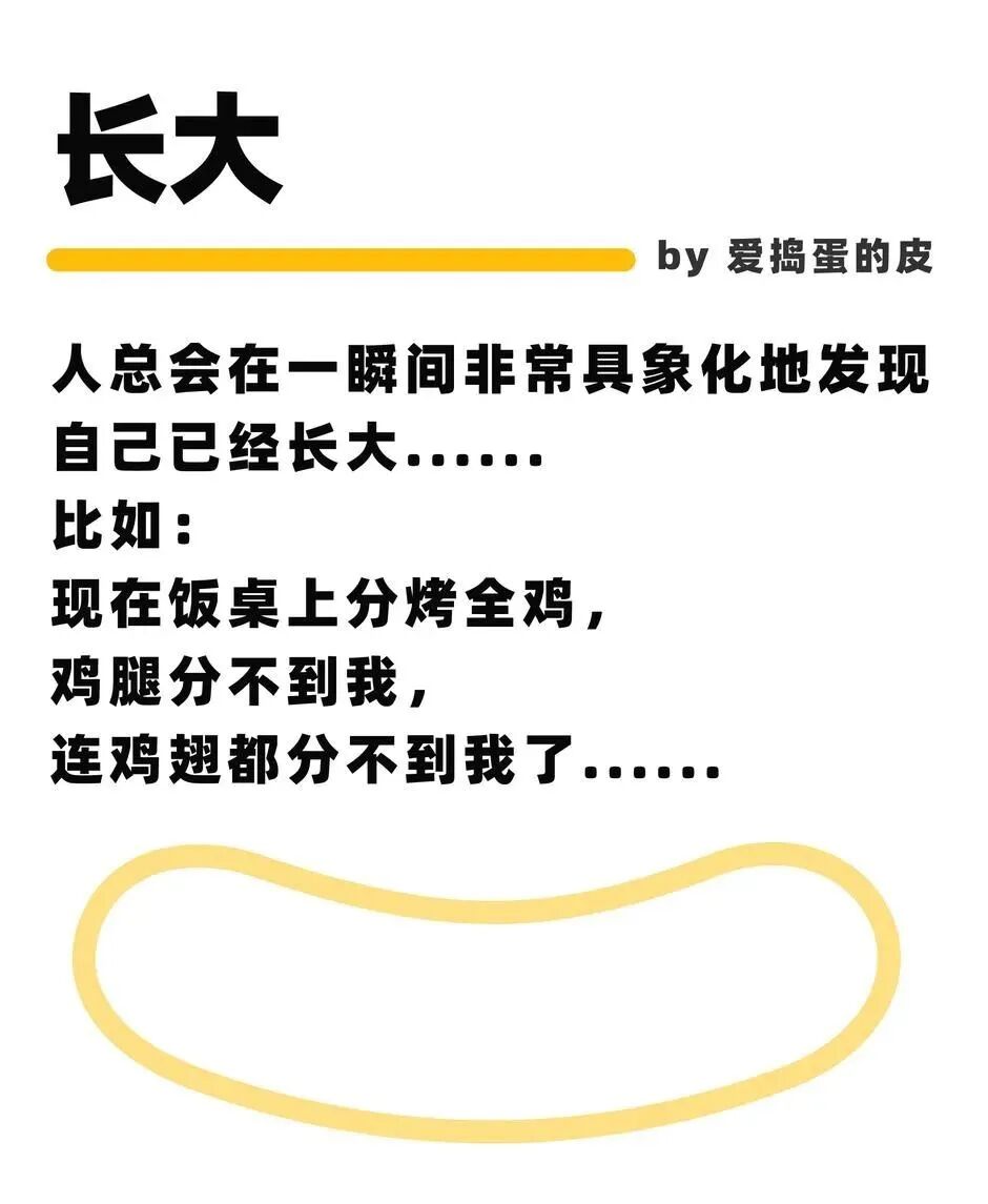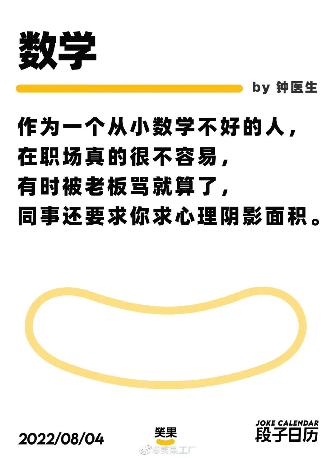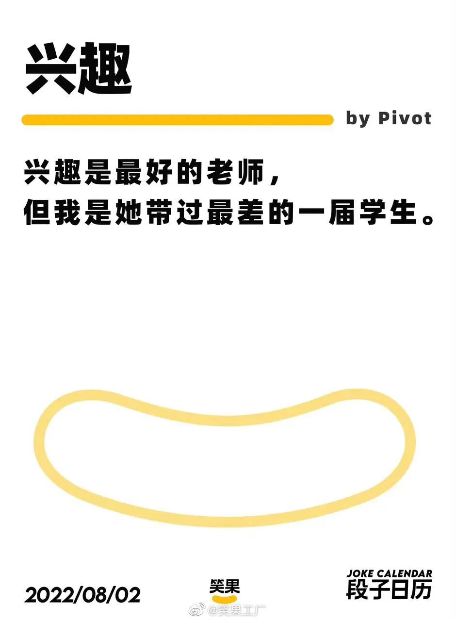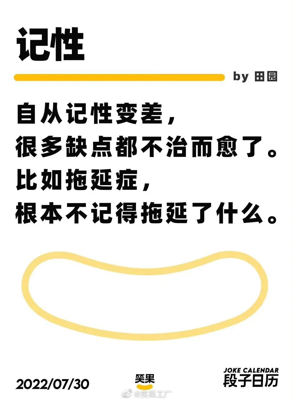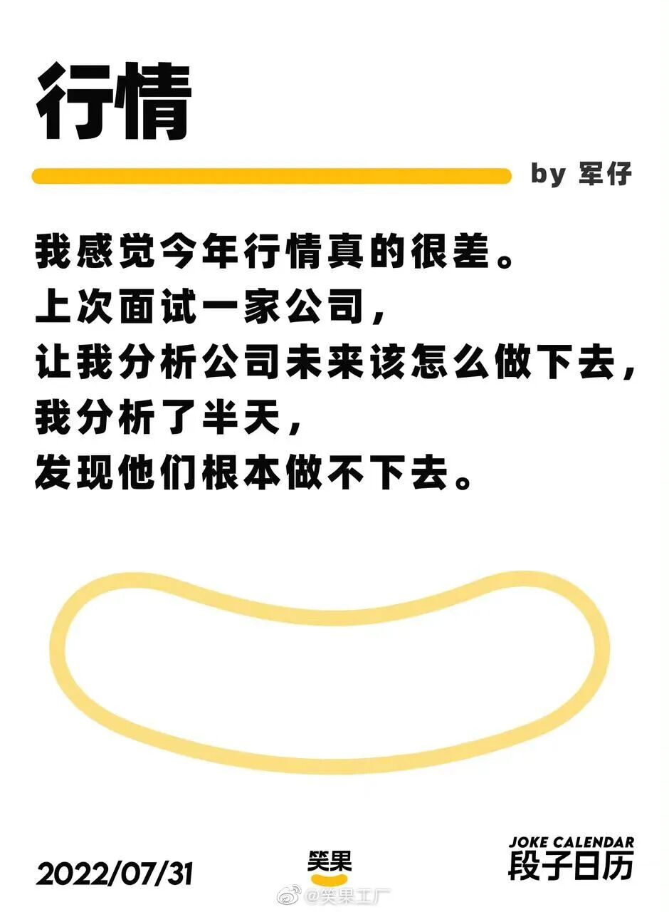 最新文章2024-01-01 笑果文化最新段子文案,洞察力绝了值得一看! 三个设计师整理编辑(ID: the3design) 来源:笑果工厂微博 最近《脱口秀大会》第五季又开播了 一波一波爆梗文案又出现了 那么今天就不聊《脱口秀大会》 🐶🐶🐶 来看看《脱口秀大会》 背后的公司——笑果文化 其中有个专栏#段子日历# 向网友们征稿 俗话说高手在民间 段子高手更是如此 关于职场、关于爱情、关于哲学...... 挑了一部分大家一起来乐一乐 爱情有时候是端错了 上错菜了 🐵 你有过搬家的经历吗? 师傅只有在没有电梯的情况下 关心你住得高不高 🐶 以前想拯救世界 现在只想拯救自己 🐺 真正的勇士 敢于不开空调就开风扇的 🐱 谐音梗是要扣钱的 40度梅雨 🐯 什么叫药到病除 忍一忍就好了 🦁 我的头发都去哪了? 都在地上呢 🐮 心静自然凉的精髓?! 🐷 只不过是换个地方吃苦罢了 🐭 克服不克服的关系不大了吧 🐹 拖延症的最高境界 🐻 提前预判了自己的预判 🐨 长大的痛苦 直观且具体 🐼 领导也不喜欢上班 喜欢你上班 🐣 你这点钱很难让我办事呢 🐸 师傅:我看过更好的 🦀 撞衫不可怕 谁丑谁尴尬 🐙 每一届不都如此 🦋 不成功变成人 🐞 果然是可以复读的 🐚 这个天气 蚊子也顶不住 🦉 学好数理化 果然不是一句假话 🐥 或许司机的鬼话 才是真的灵异事件 🐗 毕业后直接变社会人员 🦊 分析到头了 🦍 都说段子来源于生活 最好笑的段子 一定是对生活最真实的洞察 把生活过成段子 笑一笑就没那么苦了 来分享分享你段子吧 !!! 本文来自微信公众号“LOGO好好玩”(ID:Playdesigns)。大作社经授权转载,该文观点仅代表作者本人,大作社平台仅提供信息存储空间服务。 TAGS: 师傅梗段子笑果脱口秀 相关文章英赫日报 | 李宁 × 空…米兰时装周的异星来客,用结…米兰“MoLo”移动与物流…西班牙艺术家 Juan d…把小鸟画成美少女,她弃医从…这些鸡蛋包装不只是有趣,设…国产文具又炸了!晨光再造“…七点资讯 |《更衣人偶坠入…AlphaDraw筑绘通「…秦始皇的黑,是你不懂的黑。