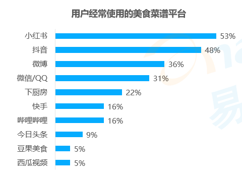 易观发布的《中国美食内容消费用户洞察2021》显示,有超过5成的年轻人从小红书学习美食菜谱,小红书成为年轻人使用率最高的美食菜谱内容平台。