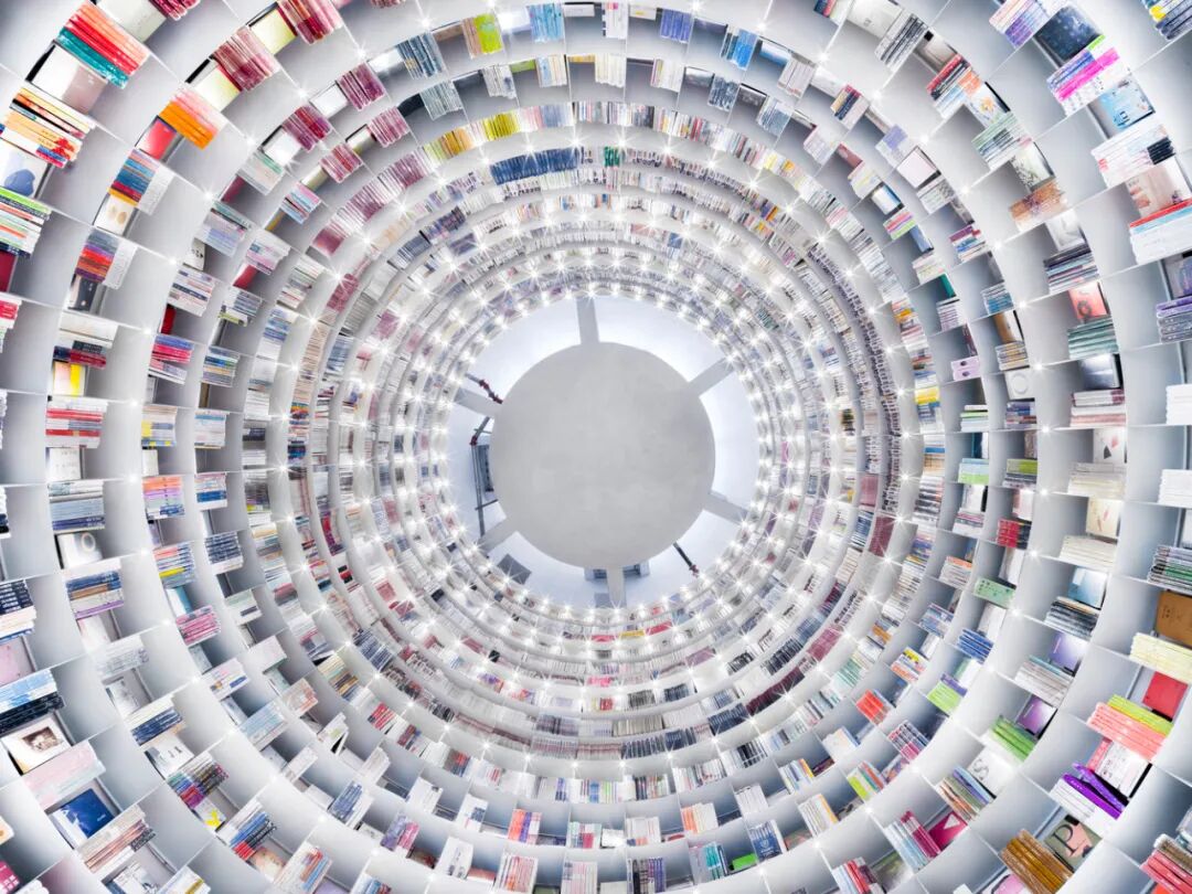 “书仓”分为三层,读者可以顺着楼梯走到屋顶,穿梭于十个圆形花园之间。十个仓,十个主题,十个故事,分别讲述了世间的十种不同梦境(世界最美图书仓、艺术仓、绘本仓、旅行生活仓、古书仓、文学仓、人文社科仓)。
