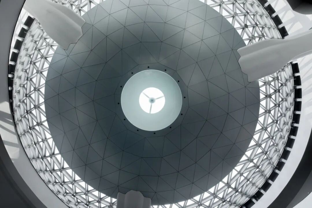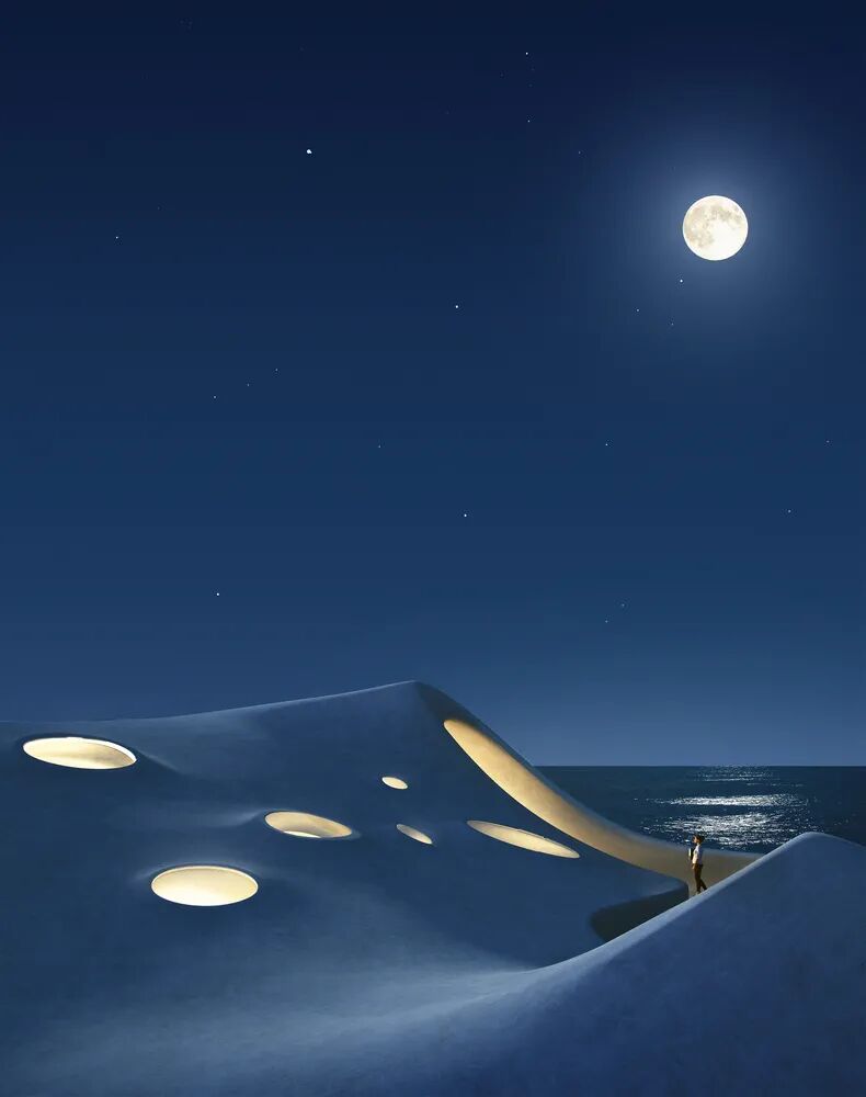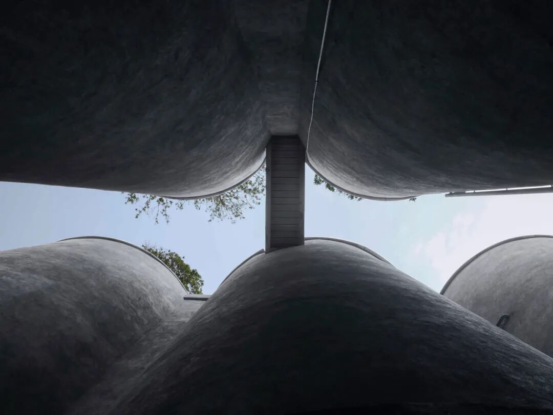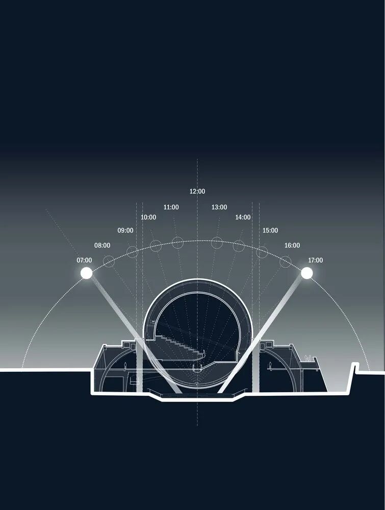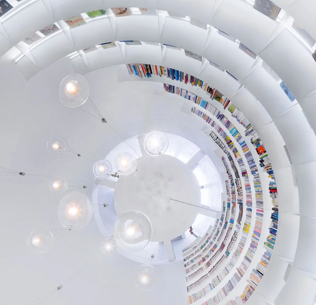 十个筒仓是十只直指天空、仿佛通向梦境的隧道。圆形视角带给人的无限延伸感,与 “书”能将人引向无限精神空间的内涵恰好契合,“书仓”这一物质空间,变为精神空间。