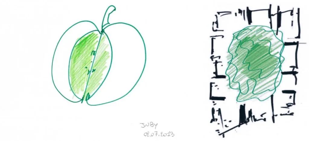 最原始的设计概念很简单:一个苹果,在硬质界面的包裹下,有柔软而丰富的内核。