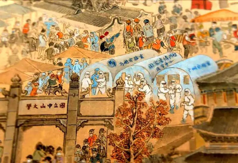陈志杰说,因为广州卷承载的信息量太大了,包括这一次的“抗疫”,大家所付出的一些努力。这也是超乎我的想象能力的。所以一边在画的时候,在这方面虽然说我没有在现场,但是看到新闻,那时候也在感叹,祖国真好。