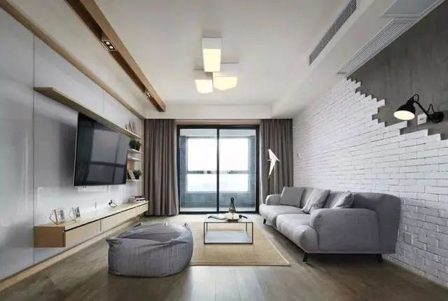 还可以直接把客厅茶几舍弃,沙发和飘窗结合起来,中间留空的地方铺上地毯,家里有小孩的,齐家小菜比较推荐这样去做,给孩子更大的玩耍空间。