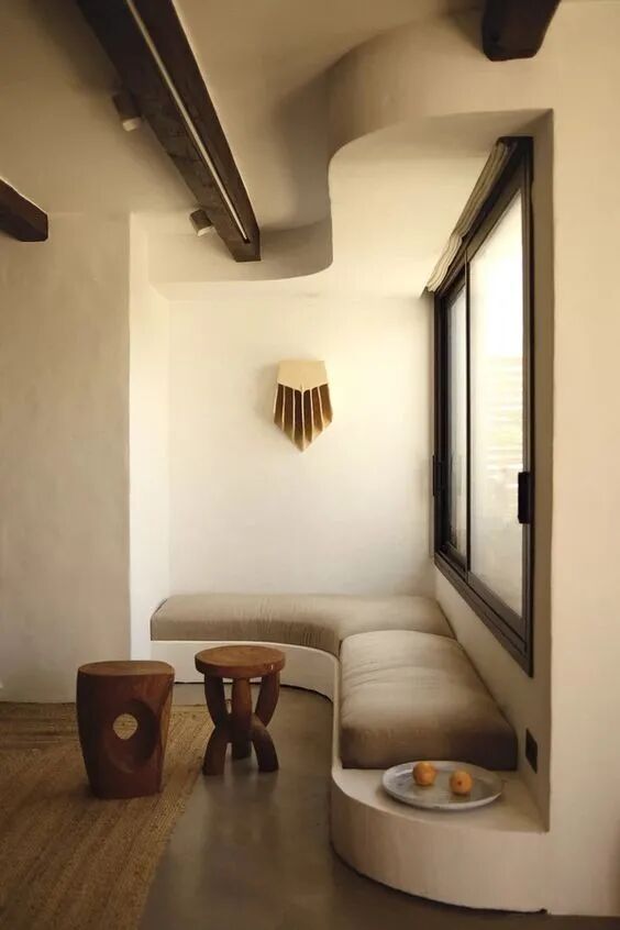 像以上这几种L型沙发都选择的木质材料样式,如果你家选择侘寂风或是极简风,还可以使用这种石膏砌成的卡座样式,和整体风格都比较搭配,使用寿命和价格也是非常不错的。