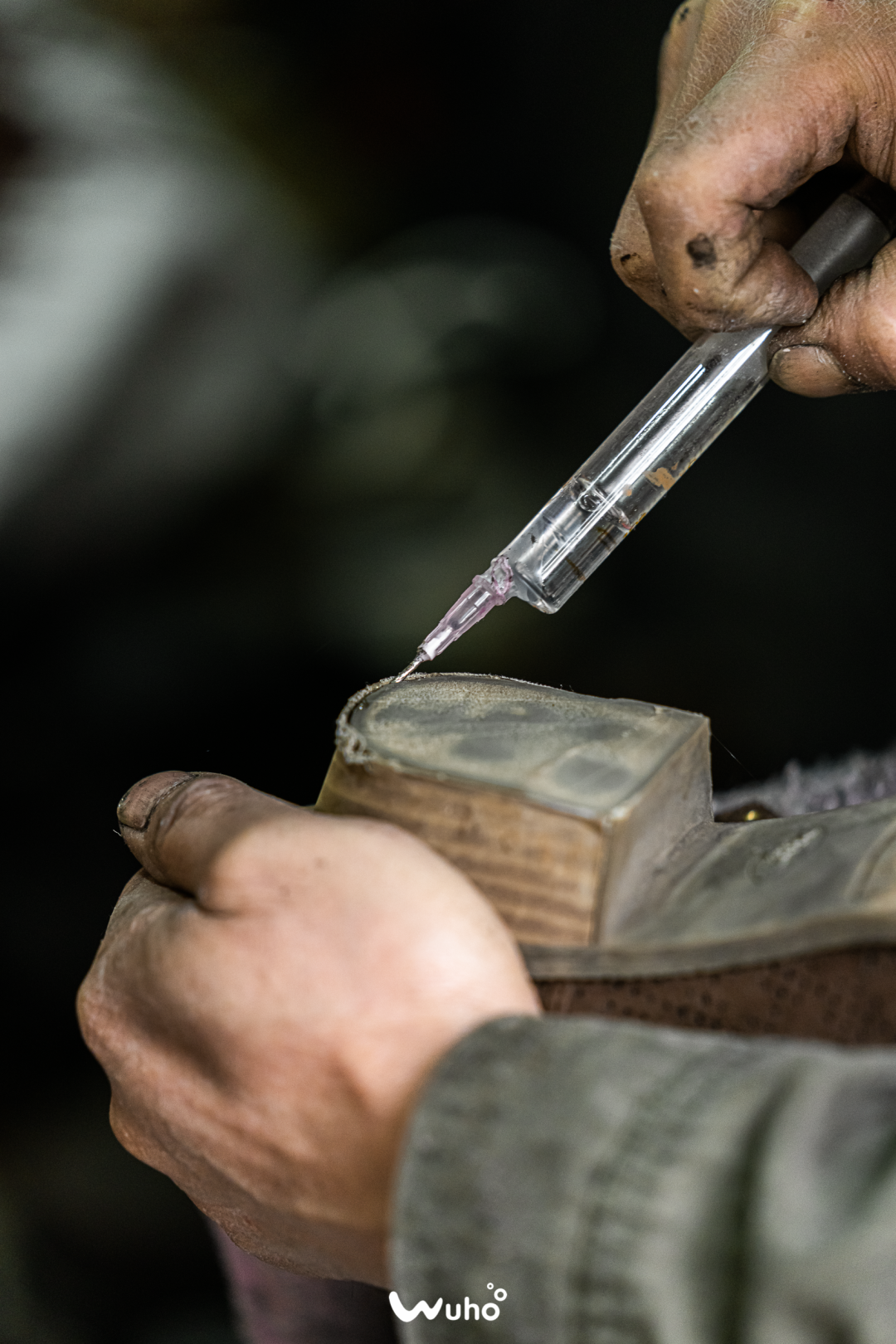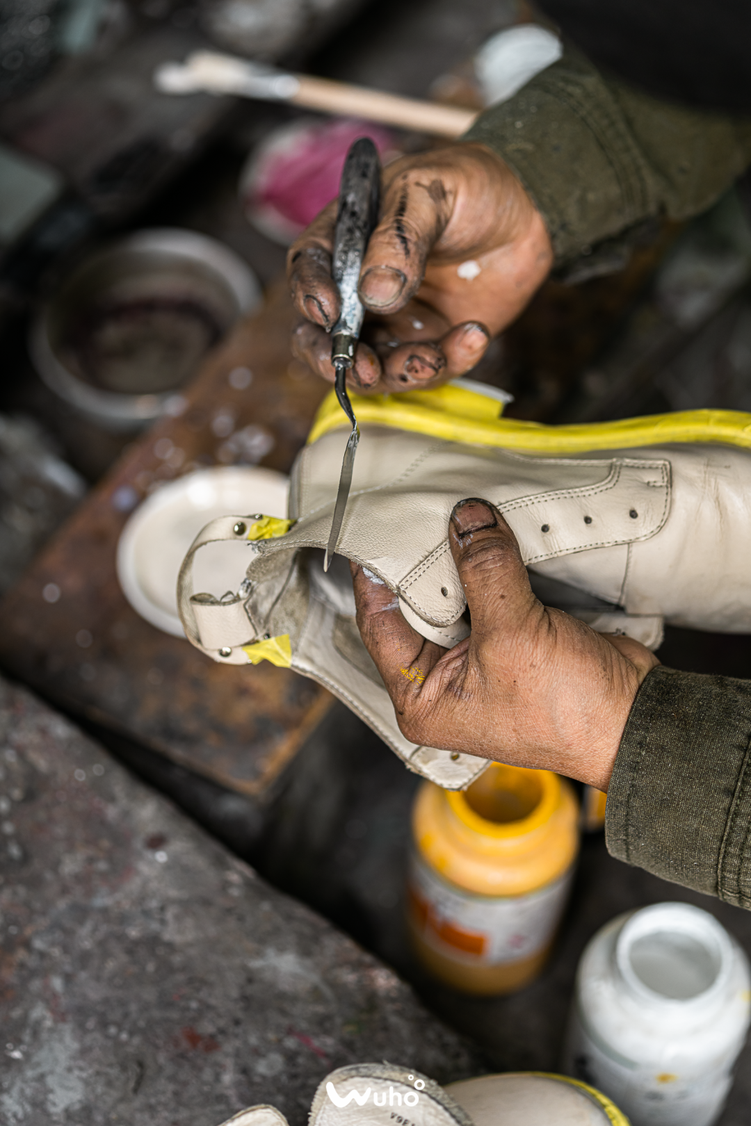 所谓断尾,是车间里鞋出厂前的最后一道制造关卡,它由手艺最好、各个环节的工艺都会的工人担任。