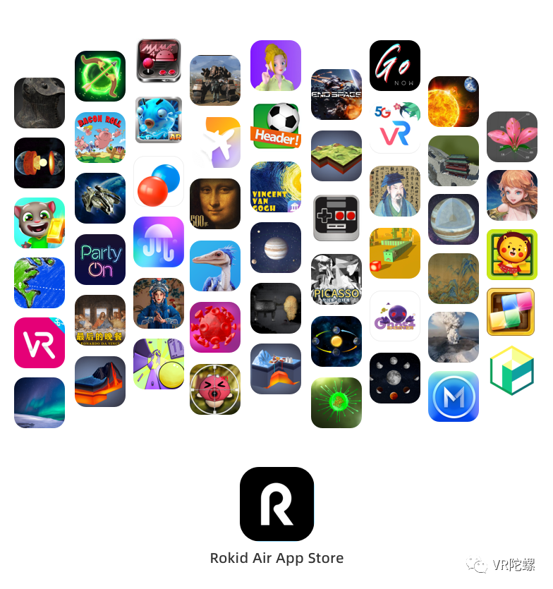 除了给用户创造一款时尚和佩戴舒适的AR眼镜,Rokid 生态团队为用户打造了丰富的应用商城。截止目前,Rokid Air应用商店已有超过70款丰富应用,涵盖游戏、观影、观赛、教育、办公等多样化场景需求。