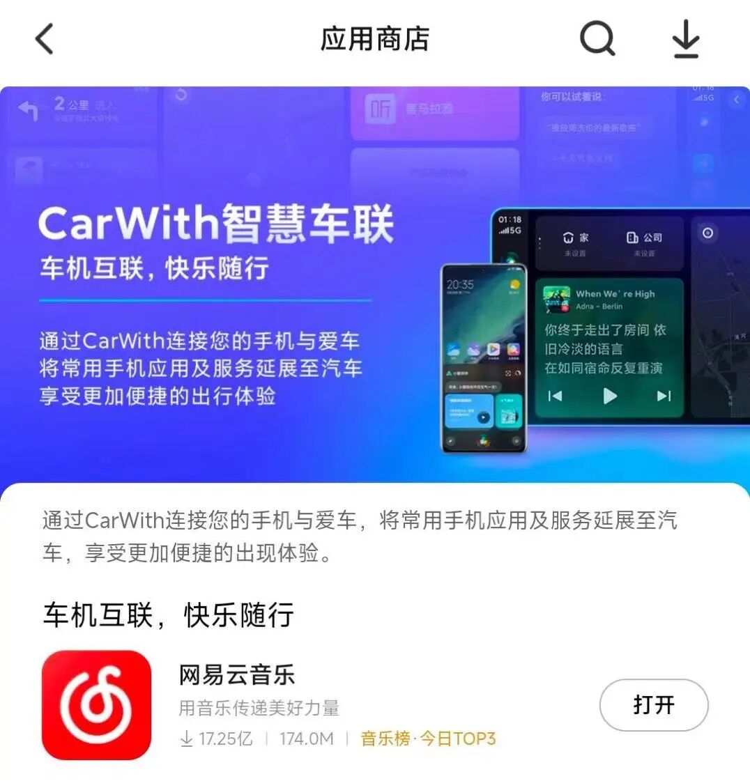 并且小米应用商店也新增了CarWith智慧车机互联专区,该专区中的应用包括:网易云音乐、咪咕音乐、高德地图、百度地图、百度网盘、宝宝巴士故事、小天才能、云听等等车机常用的软件。