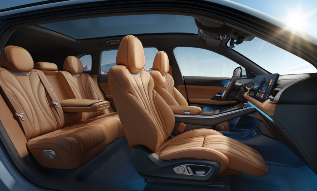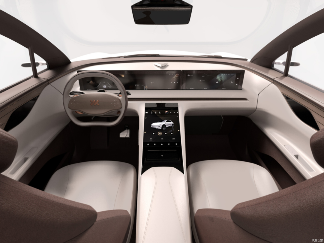 内饰方面,新车采用了撞色设计,深棕色+奶白色的色彩搭配,营造出一种温馨的内饰氛围。中控台采用了超大尺寸的三联屏设计,搭配竖状的功能控制屏,整体非常简洁明朗。