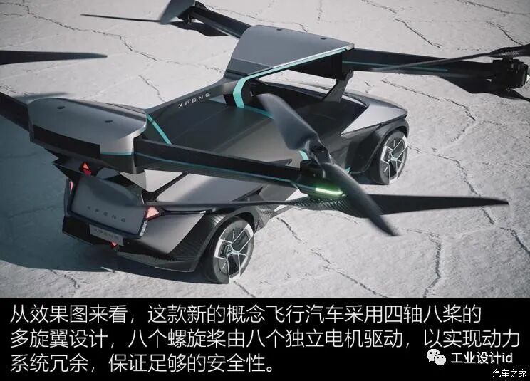 今年小鹏汇天发布的飞行汽车采用多旋翼设计,8个螺旋桨由8个独立电机驱动,相比起去年发布的横列双旋翼构型飞行汽车使用2个电机驱动2个螺旋桨的设计,拥有更高的电机和螺旋桨数量冗余,安全性更高。说人话,去年的设计,2个电机坏了一个的话,安全性难以保证;而今年的设计,8个电机坏1-2个依然能保证飞行稳定和可操控性。