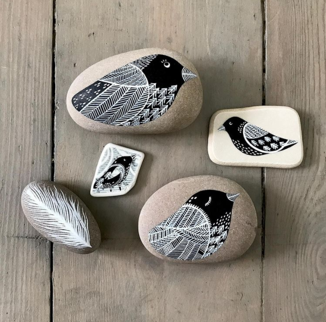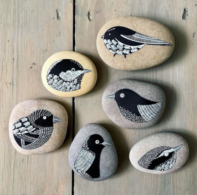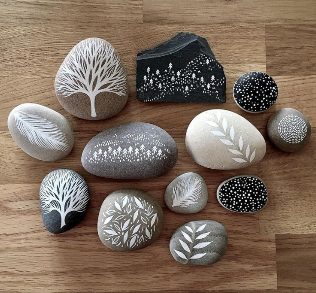 来自英国的艺术家兼插画家娜塔莎·牛顿,就可以成为你的石头画老师,她画在鹅卵石上的画作,简单又有创意,还非常可爱,好看又好学。这位艺术家出生成长于英格兰的一个海滨小镇,从小就对自然万物十分热爱,怀着对大自然的热爱,娜塔莎·牛顿将树木、树叶、动物等,手绘到一颗颗光滑的鹅卵石上。