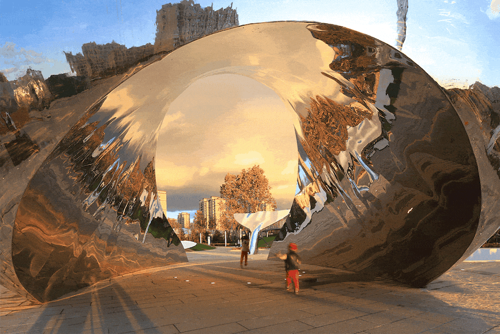 在现代科技下镜面材料以一种与众不同的形态进入人们的视线,存在于景观空间中。