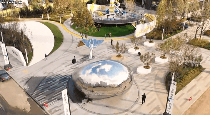 镜面设计在景观中带着一定的互动性,对观者有一定寓教于乐的功能,开发人们的观察能力。
