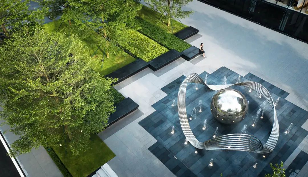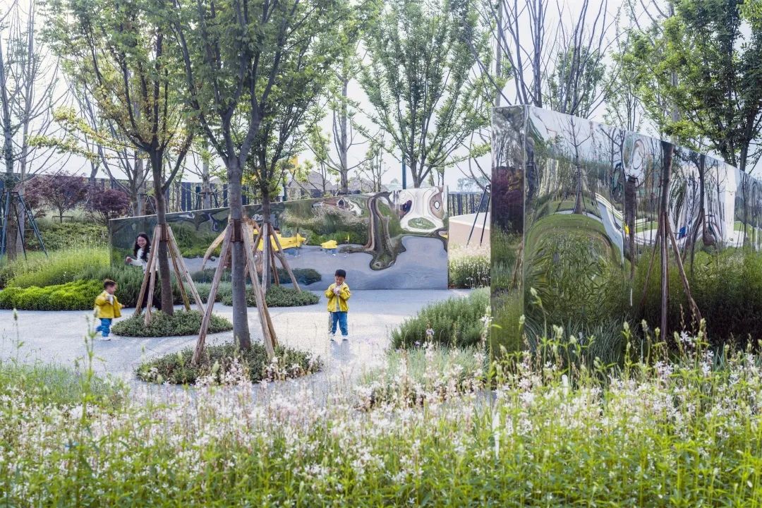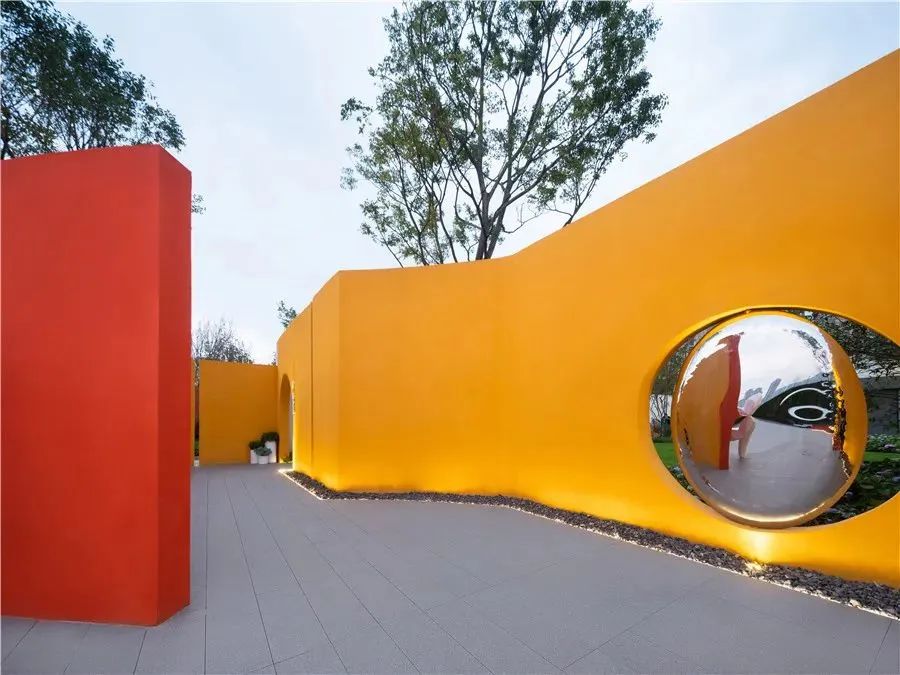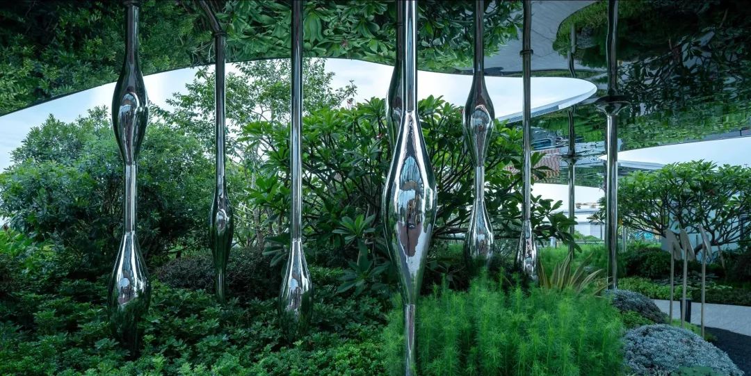 镜面材料在形态、质感、色彩等元素上极具表现力,将其运用到景观上往往带着强烈的装饰性。