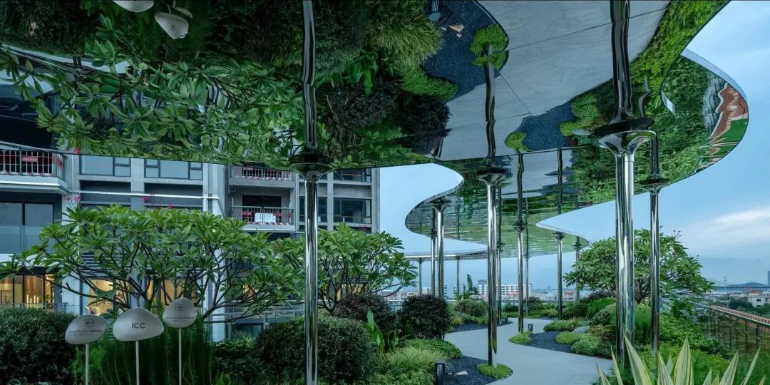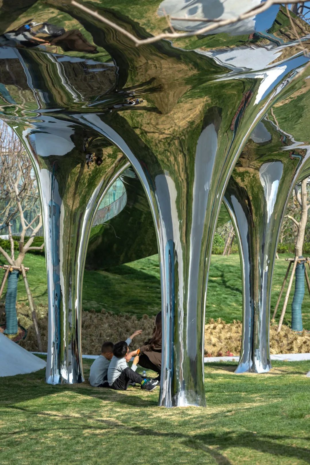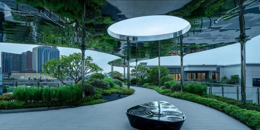 镜面材料用在景观空间中往往带有一定的功能性,镜面景观在对视觉补偿、光感补偿方面有着不错的表现。
