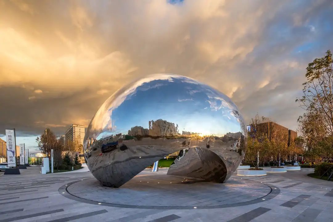 设计师通常在装置、雕塑、艺术品等地方使用镜面材料,将自我思维以一种不同的结构形式展现给大众,对景观空间进行再次诠释和塑造。