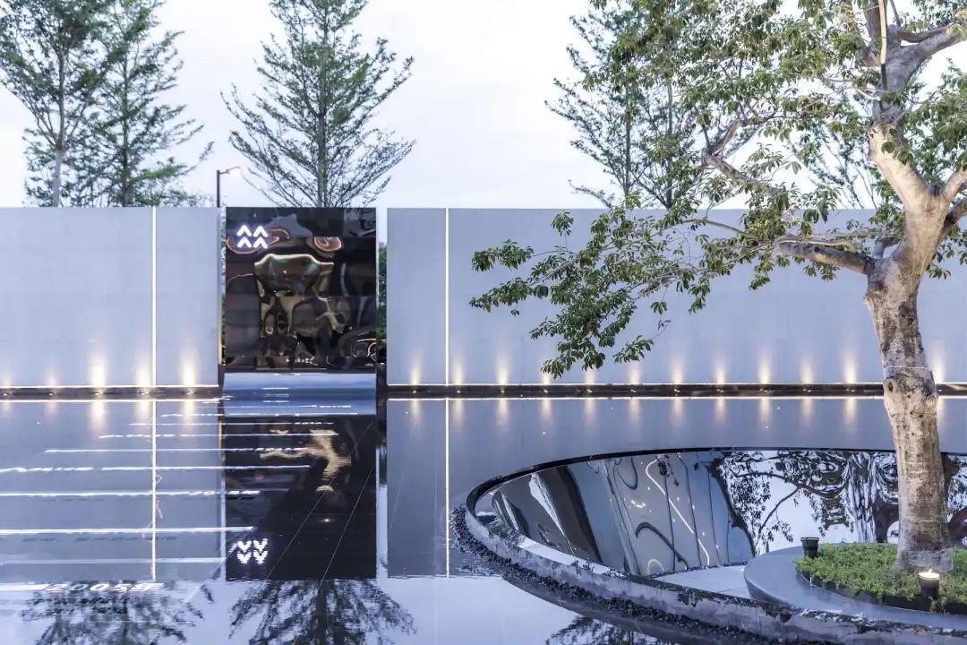 自然的元素给人们带去静谧舒适的感受,镜面景观在对自然的另类诠释上更具冲击力,同时让人们在心理上产生与自然对话的感受。