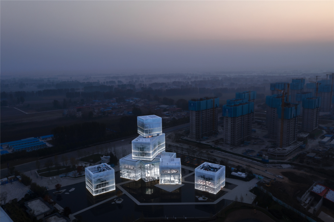 建筑设计上大胆采用10个聚散的“冰”立方体层层叠置,扭转交错,53米高的形体全方位可见。