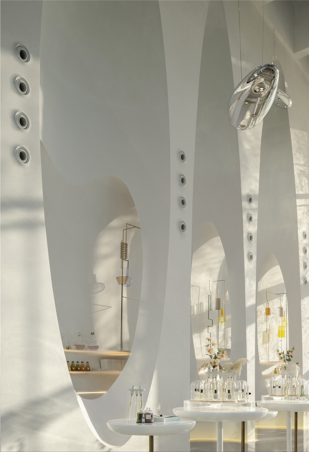 喧嚣与宁静既是矛盾亦有融合,在拥有多样化体验需求的当下,人们愈发渴望拥有一处可以消弭感知界限的空间。位于八层的香氛图书馆,以香氛无形的魅力,传达嗅觉与视觉的双重享受。