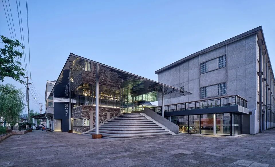 建成投入使用后,镜面雨蓬下的大台阶成为镇上居民乘凉、闲聊、打发时间的理想去处。白天这里是下方桥水街的公共客厅,到了周末傍晚,镇政府会在此播放露天电影,居民聚集在一起,形成了一个以城市书房为背景的社区公共电影院。