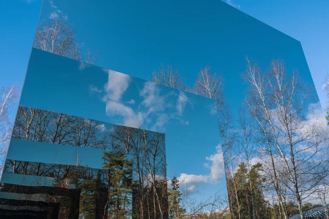 当把镜面运用在建筑的外表皮时,它能够反射出周围环境、自然光线与气候的变化,在视觉上将建筑与环境融为一体,为建筑赋予了动态的表达与梦幻般的光影效果。