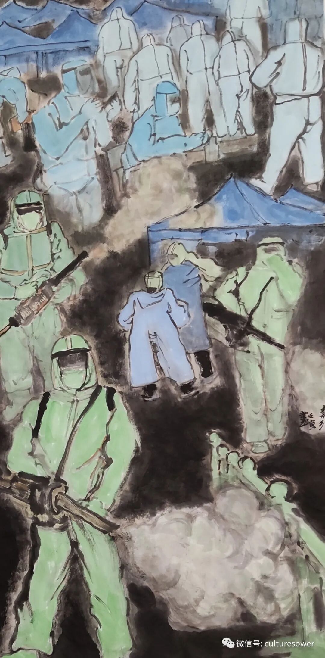 生活工作于上海的每一个公民在这次疫情中都有很多话要说,我作为一个画者更是如此,千言万语只能绘于笔端,用画作将身临其境且有感而发的话用形象表达出来,用造型语言饱满的感情尽力而为抒发切身感受,用绘画讲好上海抗疫期间的故事。每天除了关心疫情动态,就是拿起画笔默默地为隔离在家的每一个人祈祷,希望早日恢复平静的生活。现在每天牵挂战“疫”状况,关注数字变化,盼望疫情尽快结束,患者早日安康,人民生活恢复正常。