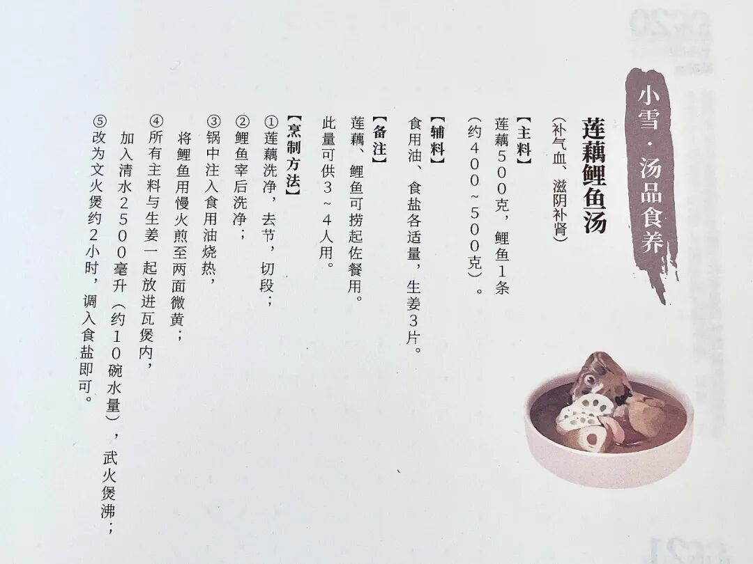 ● 养生日记本建议的小雪节气食养方