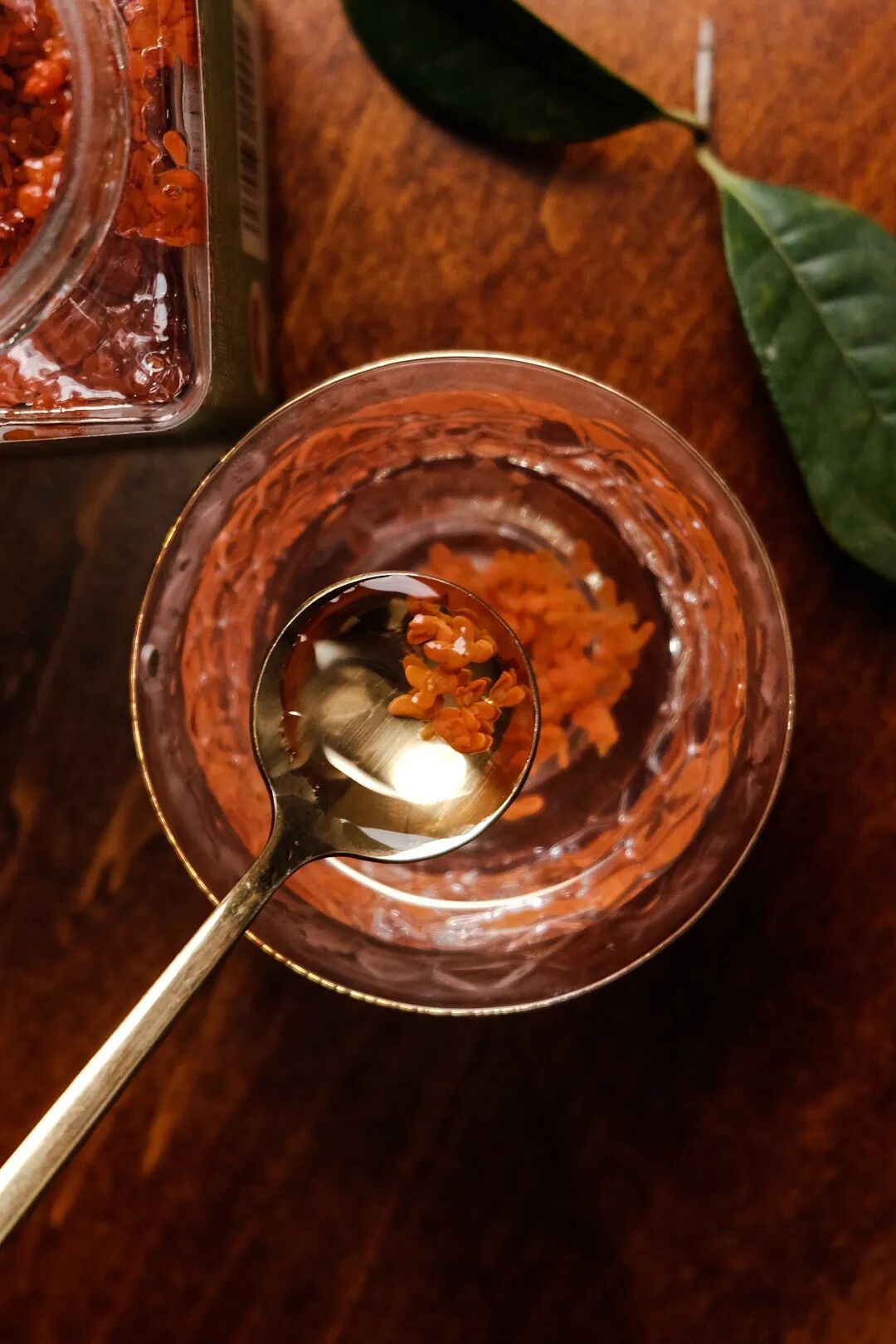 在喝米酒、酒酿圆子的时候也可以加一小勺