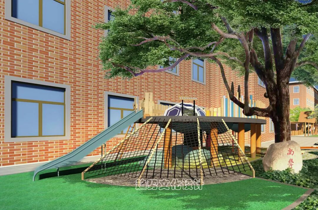 小学校园景观的设计需要考虑到使用者的年龄特点,童趣的景观造型更能博得孩子们的青睐。
