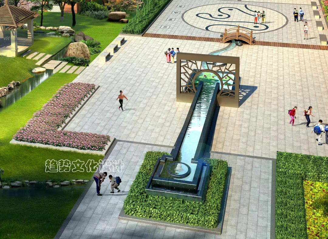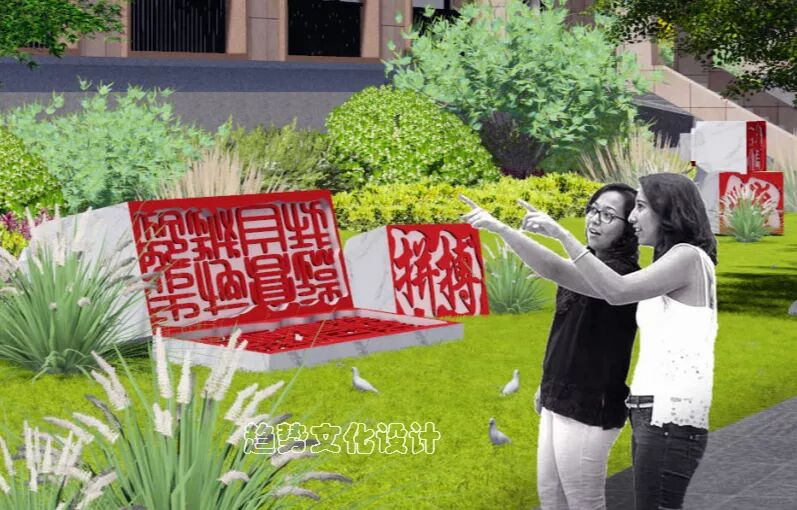 由传统文化“引爆”而来的创作灵感如书画、诗词歌赋、篆刻印章等,如临海大洋小学的“曲水流觞”景观设计,创作来源于中国古代传统的文人游戏,现融入校园广场中设计,自生一分雅趣。