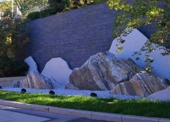 某校的片石假山,灵感来源于自然山脉的形态。蜿蜒起伏的山体,将大自然中的巍峨高山置入校园,自生一分气势。