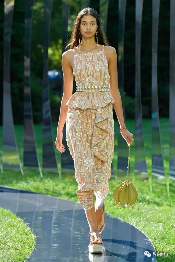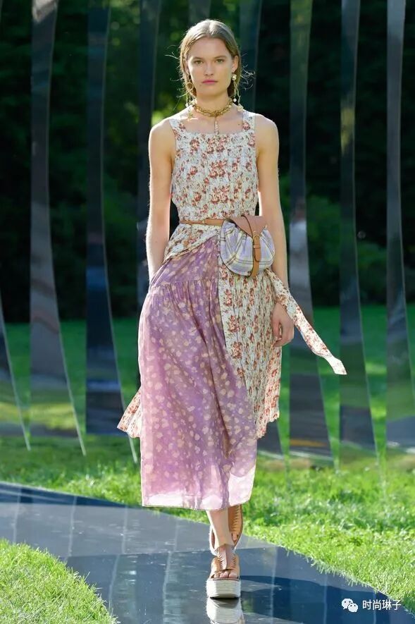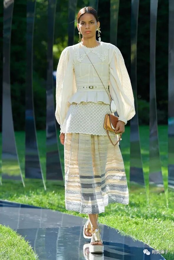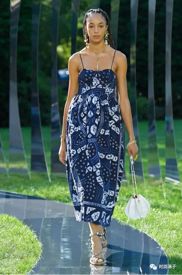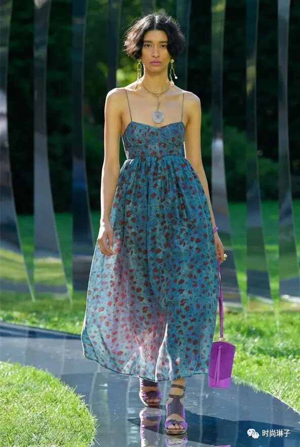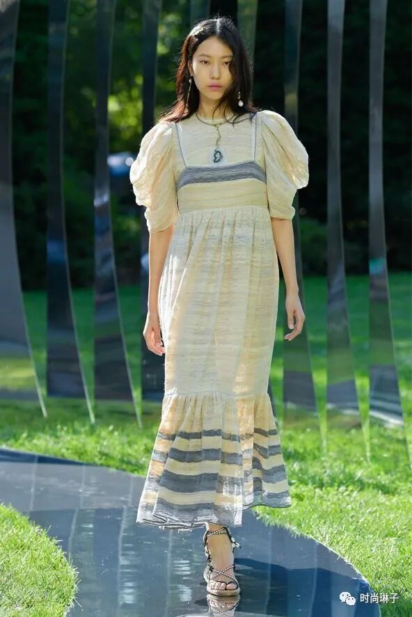 Ulla Johnson是第一位在布鲁克林植物园办秀的设计师,居住在附近的她,在忙碌的日程中经常往返于布鲁克林,这里的花园就像是一片绿洲,带给人安宁,在那一刻,设计师决定讲诉一个关于停顿的故事。